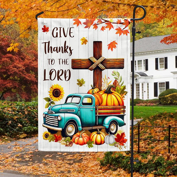 Fall Pumpkins Truck Thanksgiving Flag Fall For Jesus He Never Leaves Flag