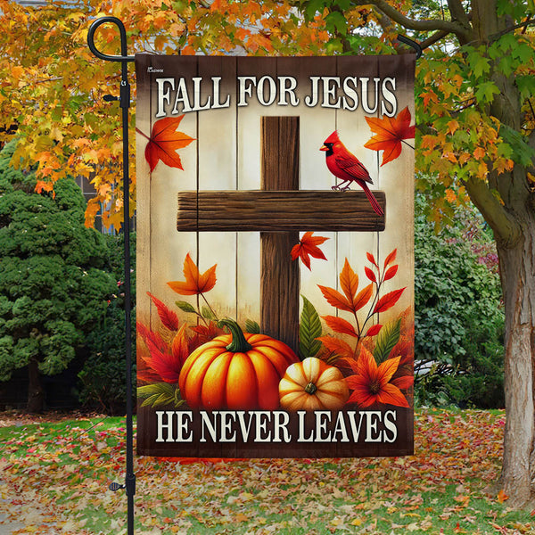 Fall For Jesus He Never Leaves Fall Thanksgiving Halloween Pumpkins Harvest Flag