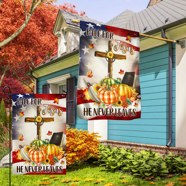 Fall Flag Fall For Jesus He Never Leaves Pumpkins Truck Thanksgiving Halloween Flag