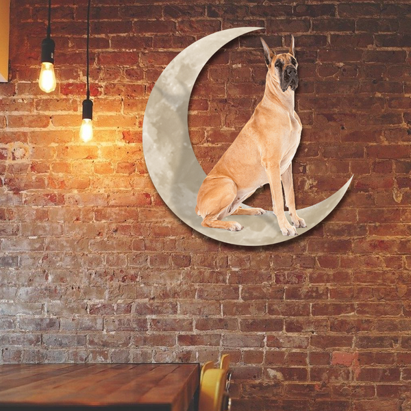 Great Dane Dog And Moon Hanging Metal Sign QNK879MSv34b