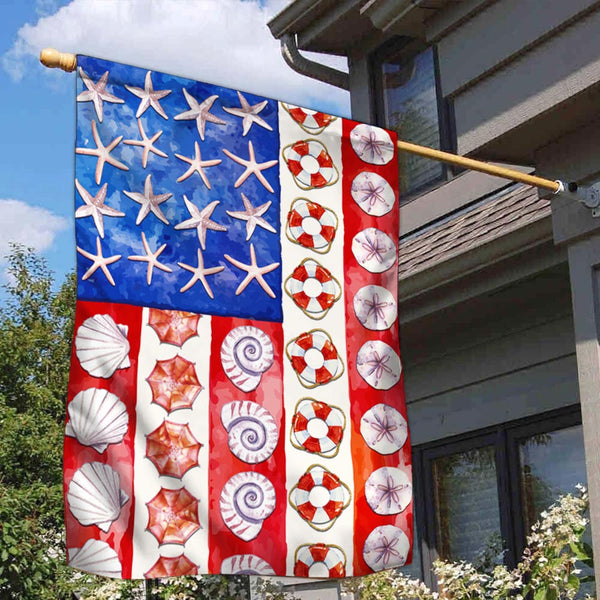 Fish & Sea Shells American Flag – Nautical Independence Day Decor 3-Day Shipping