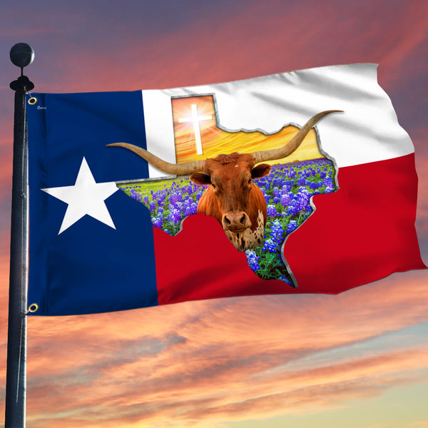 FLAGWIX Texas Bluebonnet and Longhorn Flag
