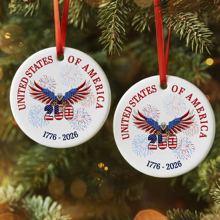 250 years of America Ceramic Ornament | Patriotic 4th of July Ornament