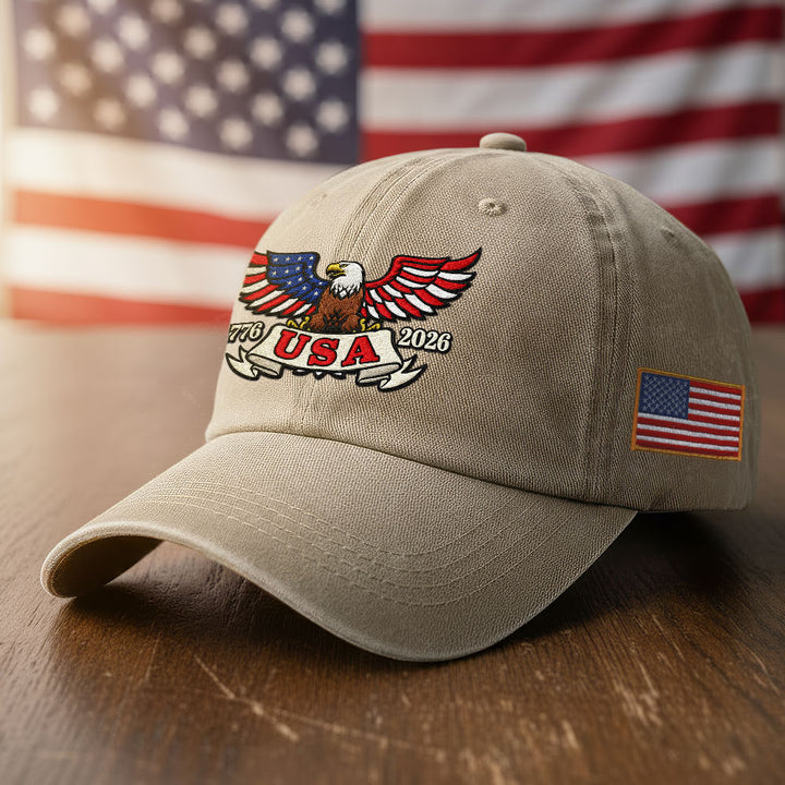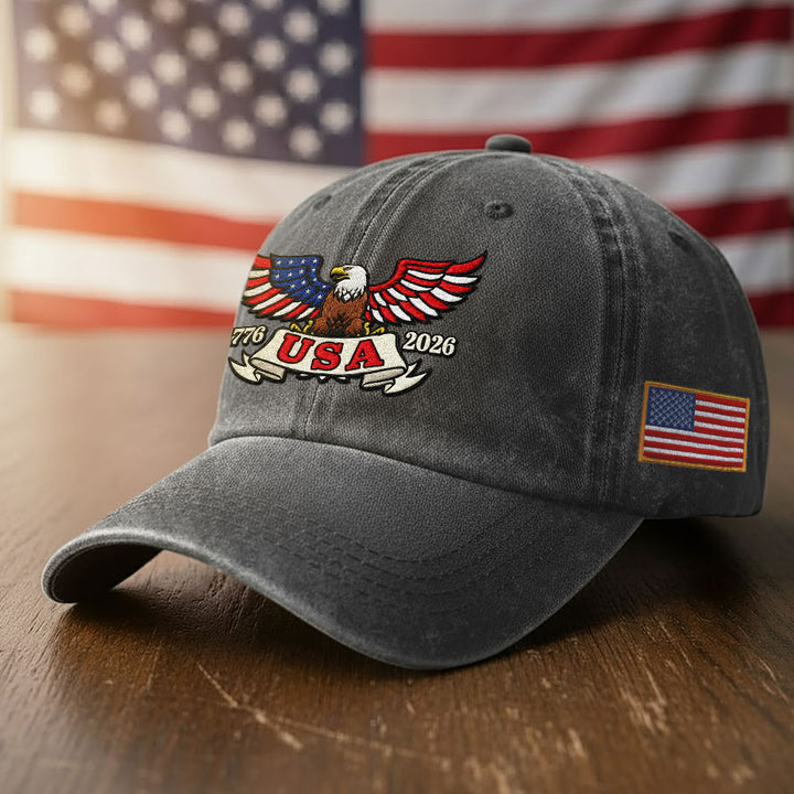 250 Years of America Patriot Washed Cap with Embroidered Eagle USA Flag