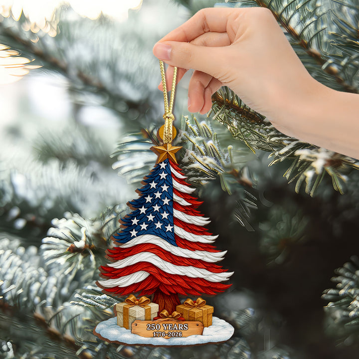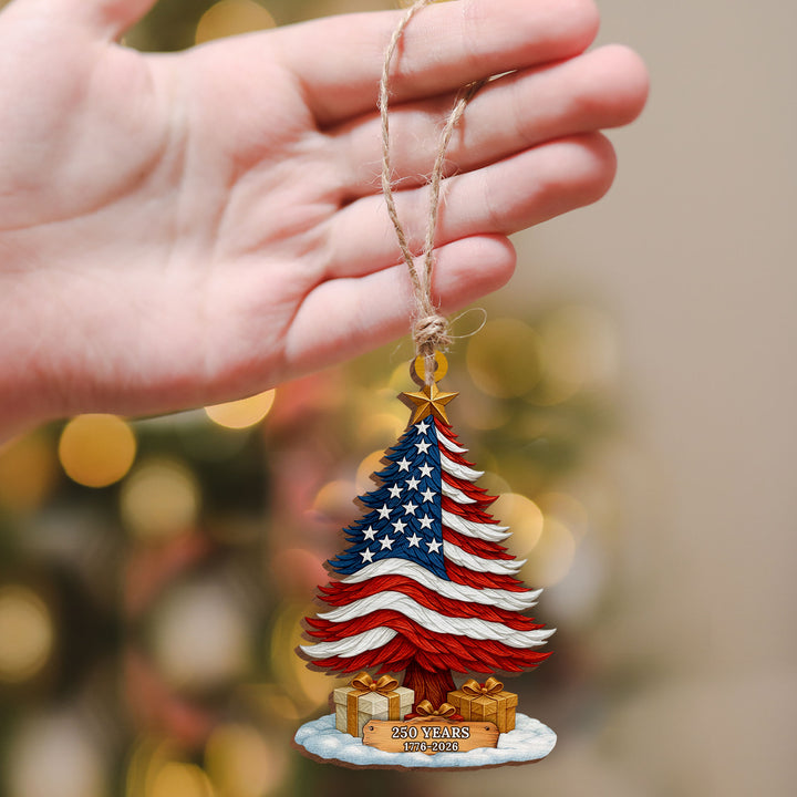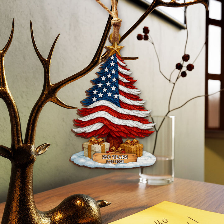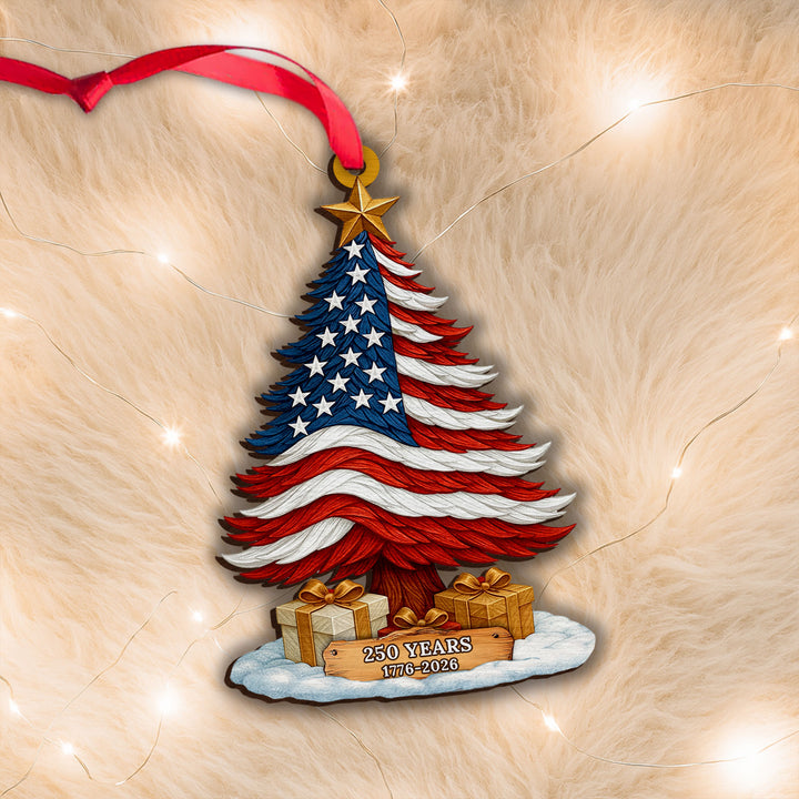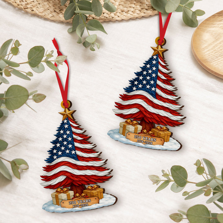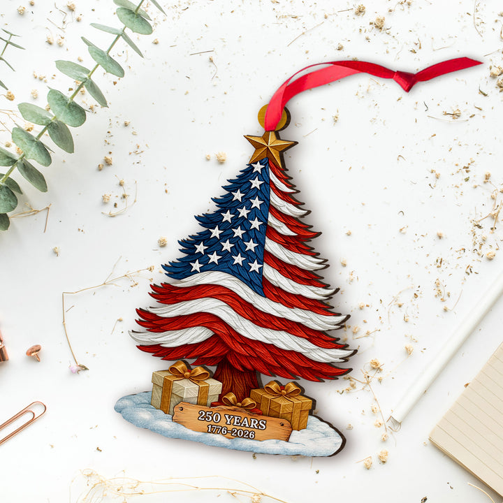 250 Years of America Patriotic Christmas Tree Wooden Ornament, 1776 - 2026 Christmas Tree Decoration, Patriotic Ornament, Indepence Day Gift