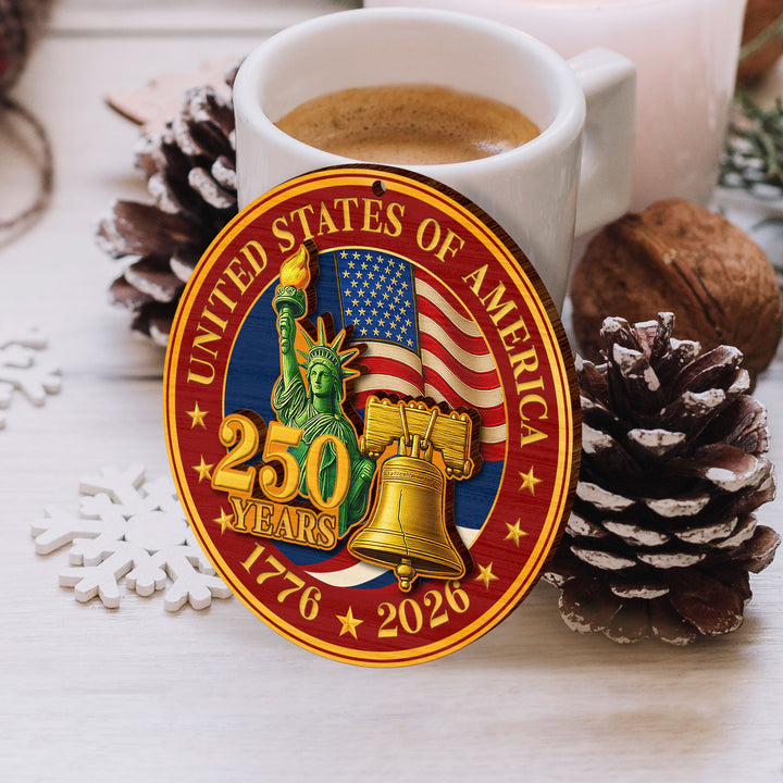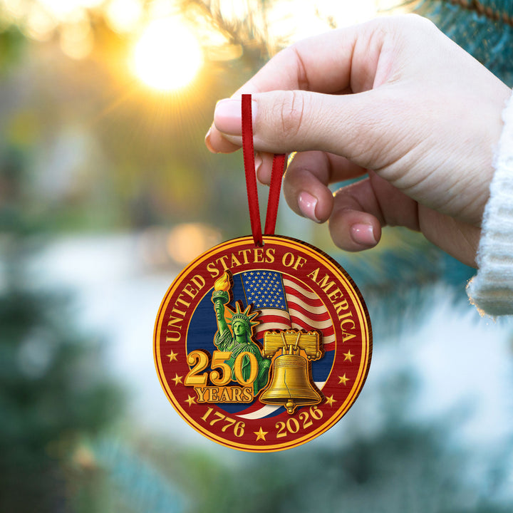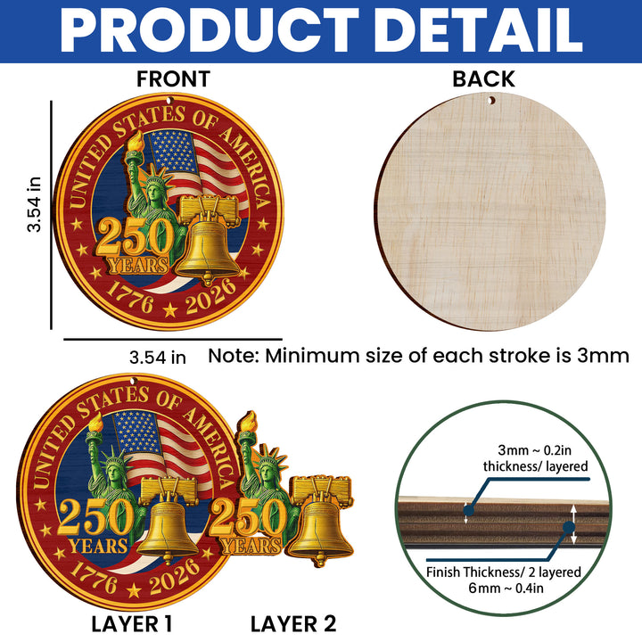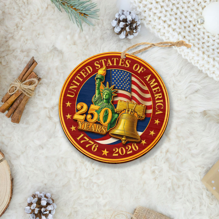 250 Years of America Wooden Ornament, 1776-2026 Liberty Bell Decoration, Patriotic Ornament, American Independence Day Gift, July 4 Decor