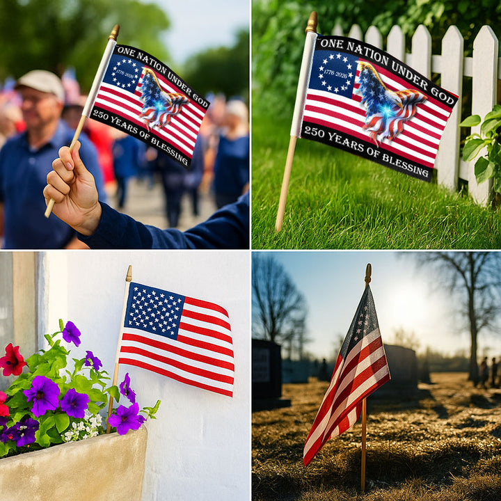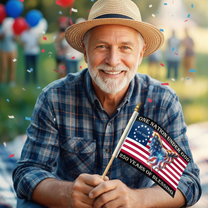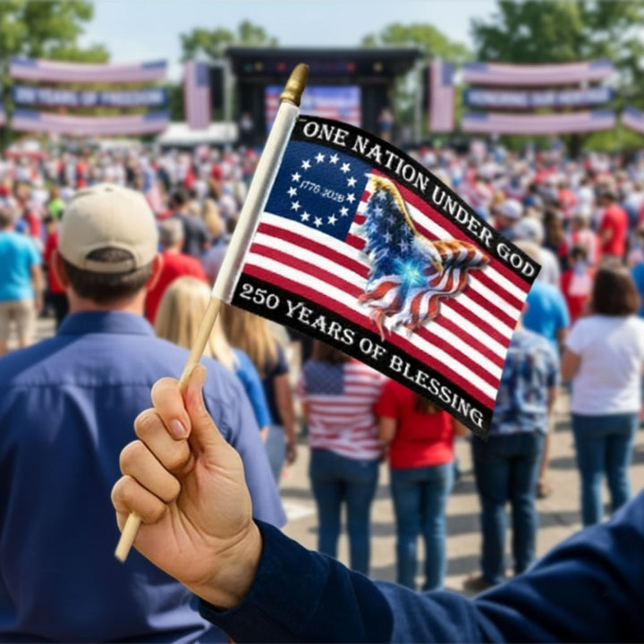 250 Years of Blessing Flag, Christian Cross Eagle Handheld American Flag