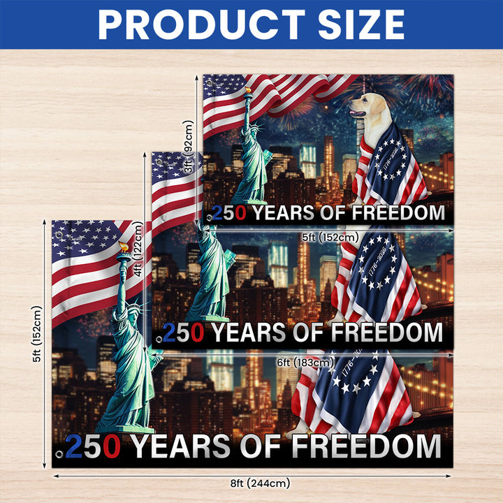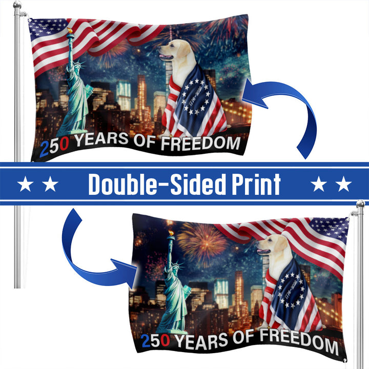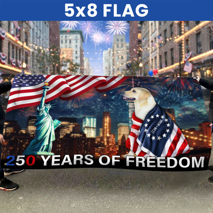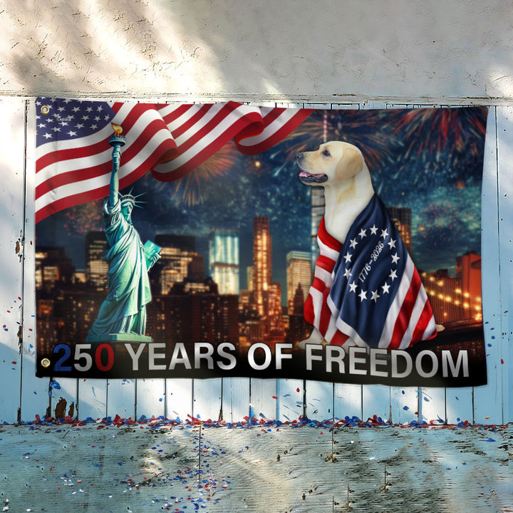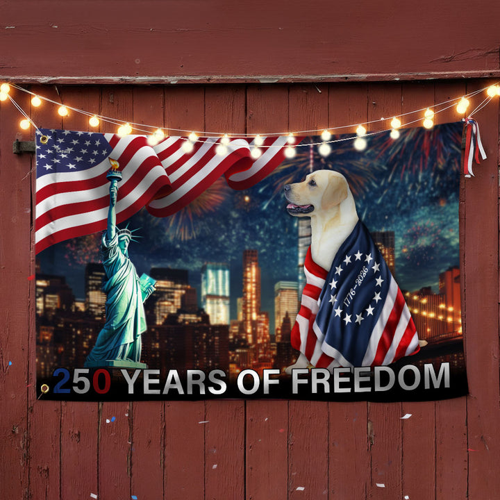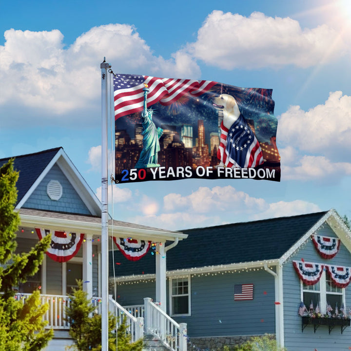 250 Years of Freedom Flag | Patriot Dog Wrapped in Glory Grommet Flag