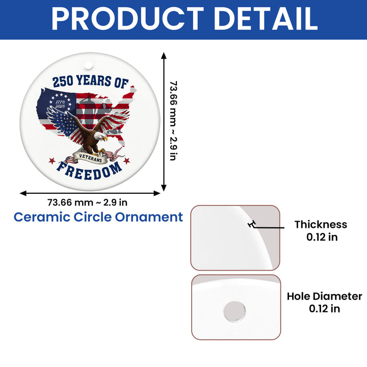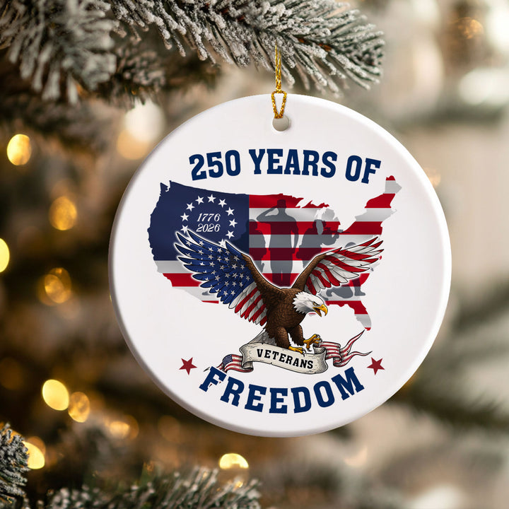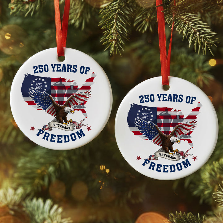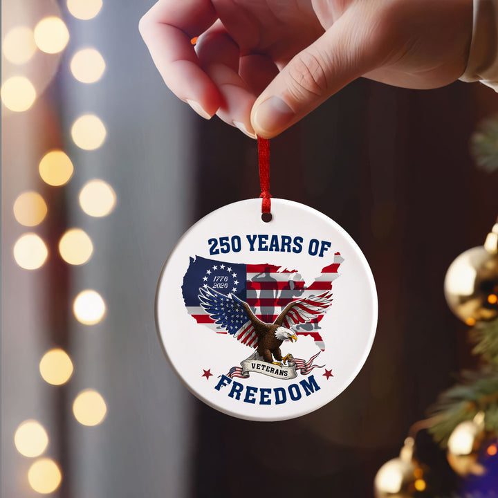 250 Years of Freedom Ornament | Patriotic Veterans Ceramic Ornament