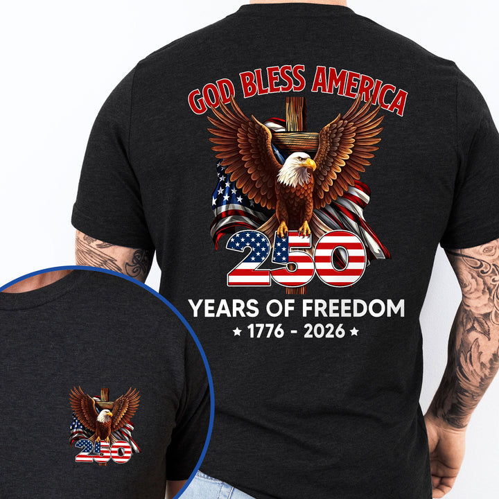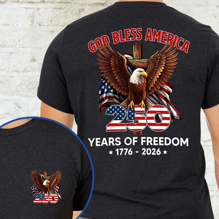 250 Years of Freedom T-shirt | Patriotic God Bless America Eagle Shirt