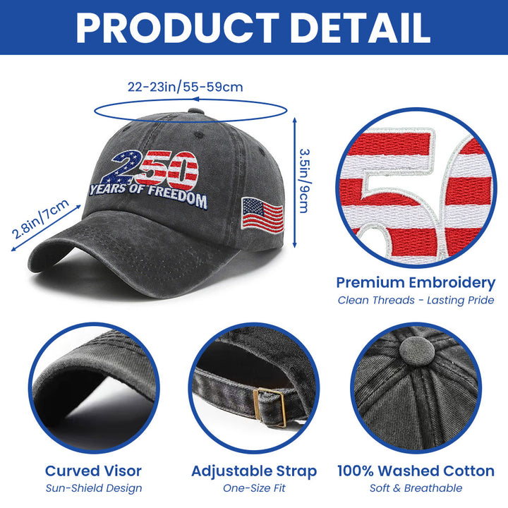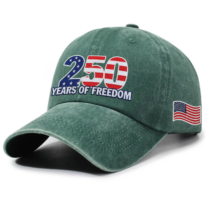 250 Years of Freedom Washed Cap with Embroidered American Flag