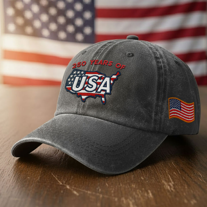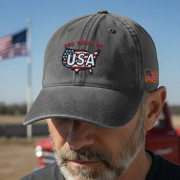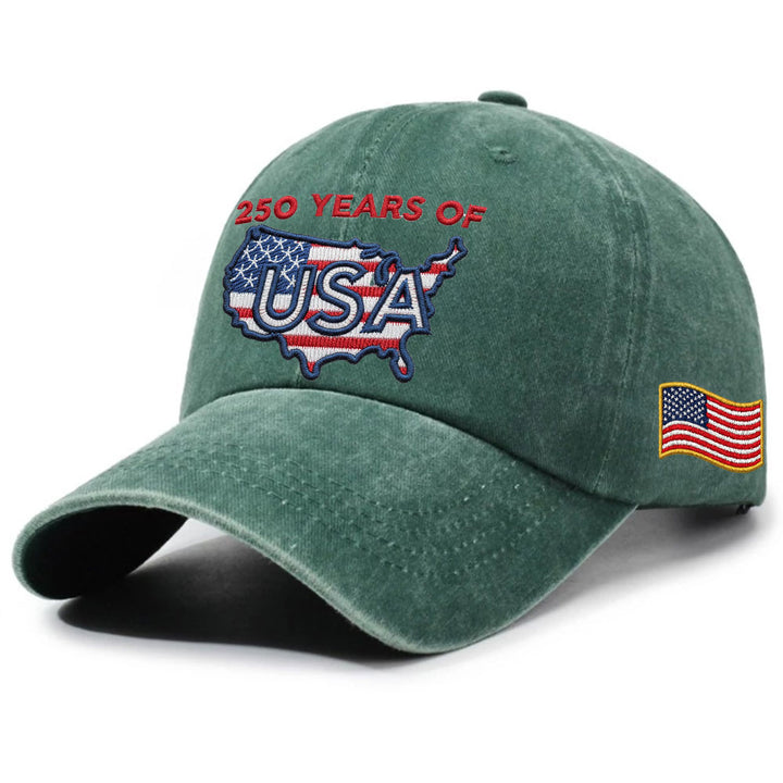 250 Years of USA Washed Cap | Patriotic 250th Anniversary America Map