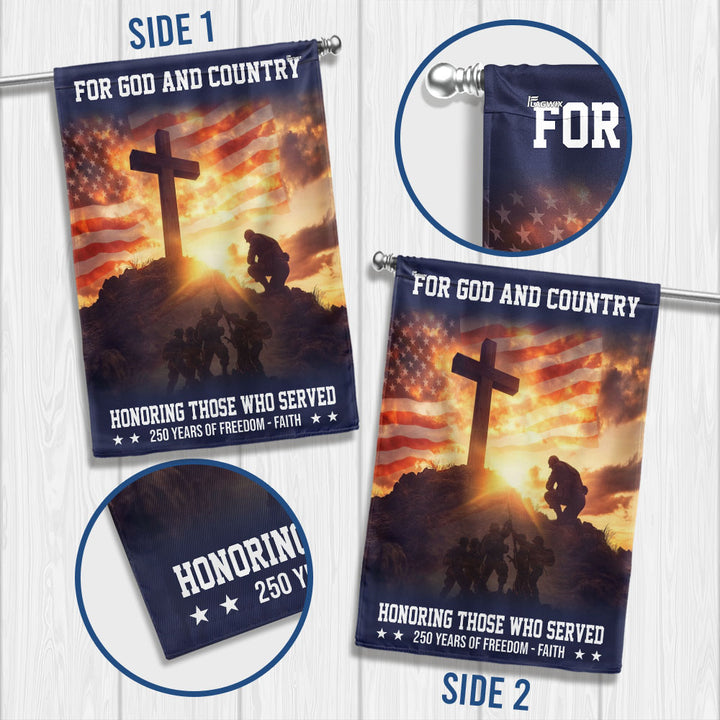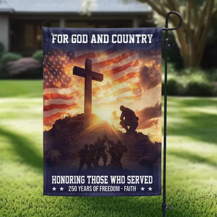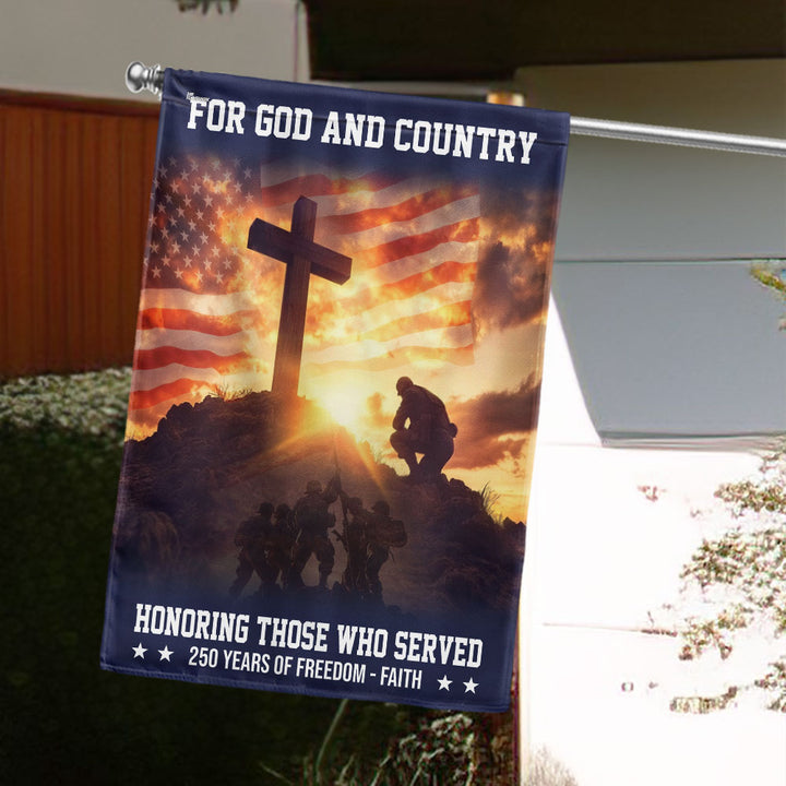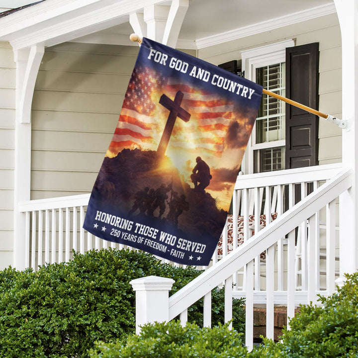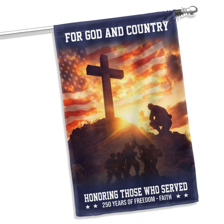 250 years Veterans American Flag Patriotic Kneeling Soldier Cross Flag