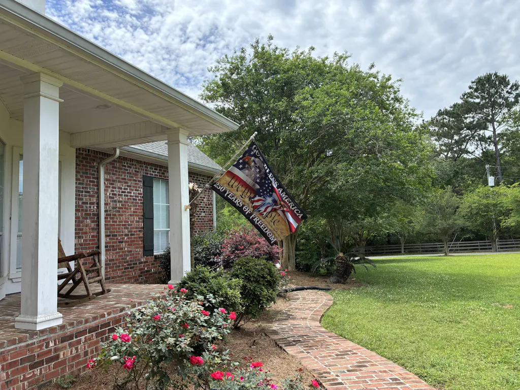 The flag arrived in perfect condition and is now gracefully blowing in the wind by our front doors.