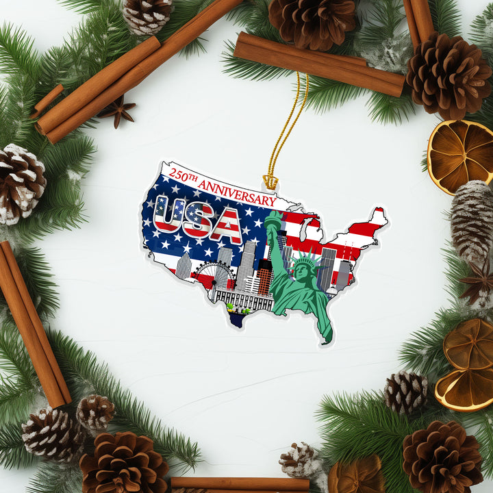 250th Anniversary Ornament | USA Map Liberty Patriotic Acrylic Ornament