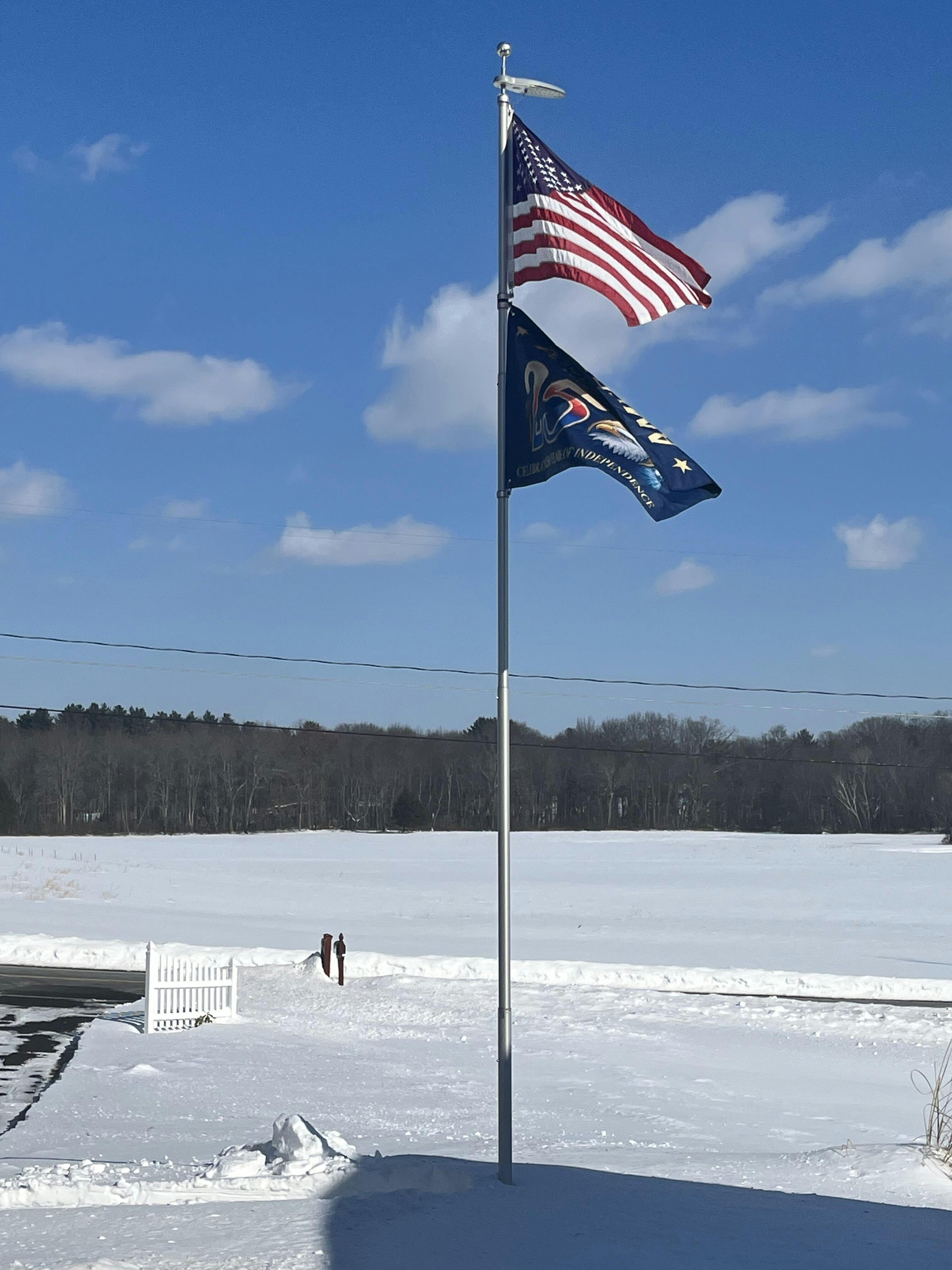 I love the flag itself but the spinner attachments have a thumbscrew to tighten onto the pole that the flag gets caught on when the wind blows so the flag keeps wrapping up on the pole. I’m going to have to find a different design or pole assembly