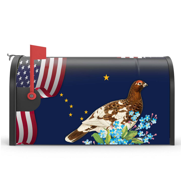 Alaska State Willow Ptarmigan Bird and Forget-Me-Not Flower Mailbox Cover MLN1141MBv10