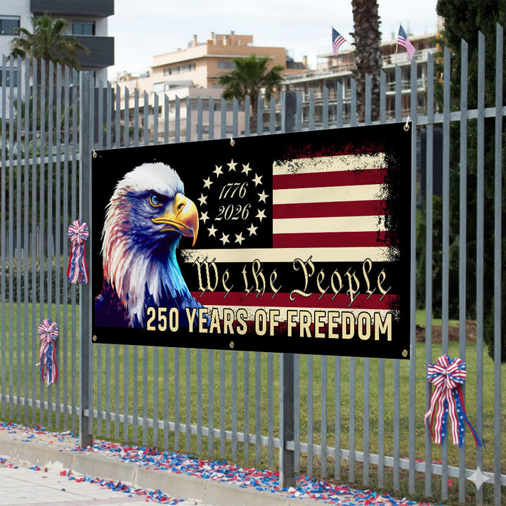 America 250th Anniversary Fence Banner We The People Patriotic Flag