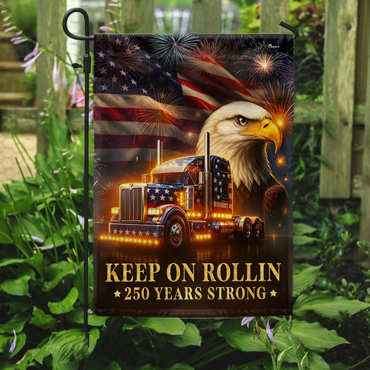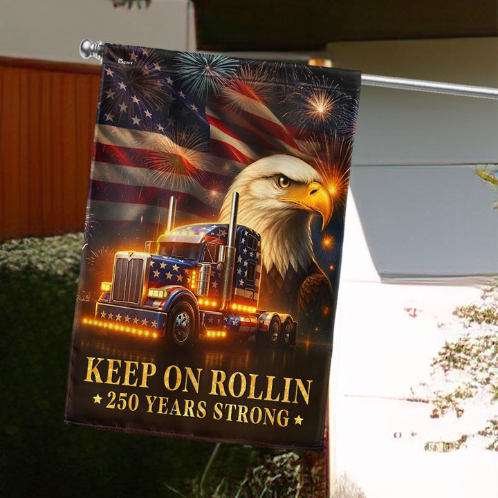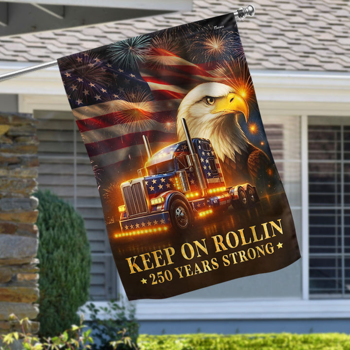American Flag for Truckers – Keep On Rollin 250 Years Strong Decor