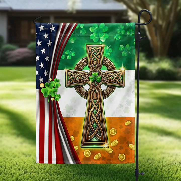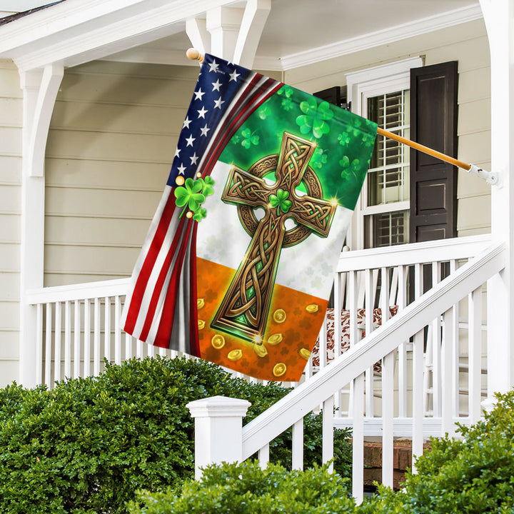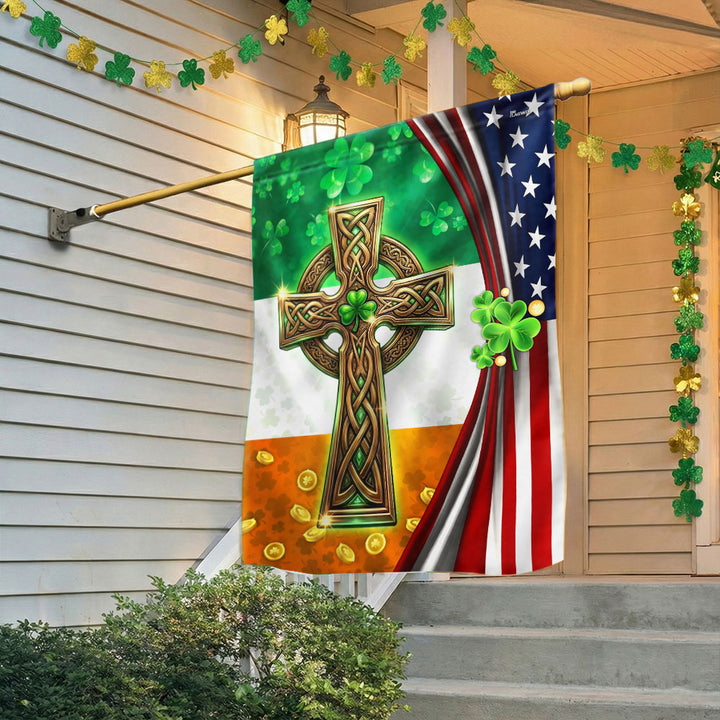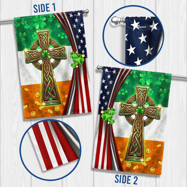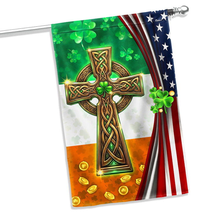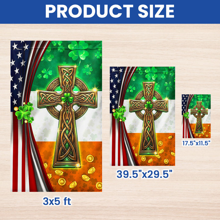 American Irish Celtic Knot Cross Flag, Shamrock St. Patrick’s Day Flag