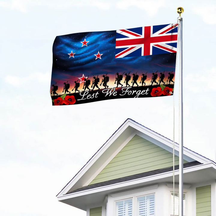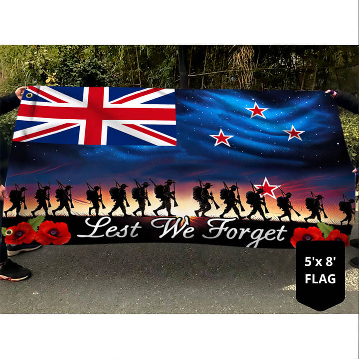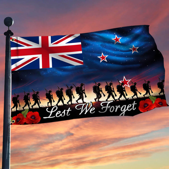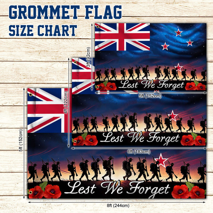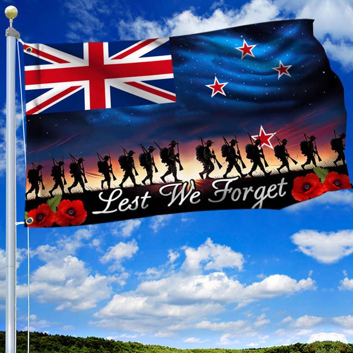 Anzac Day New Zealand Lest We Forget Grommet Flag