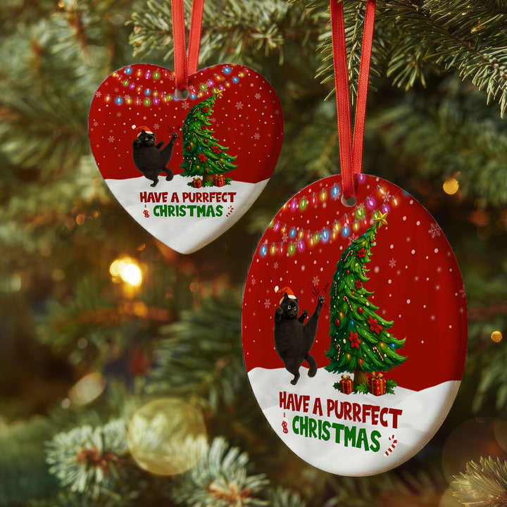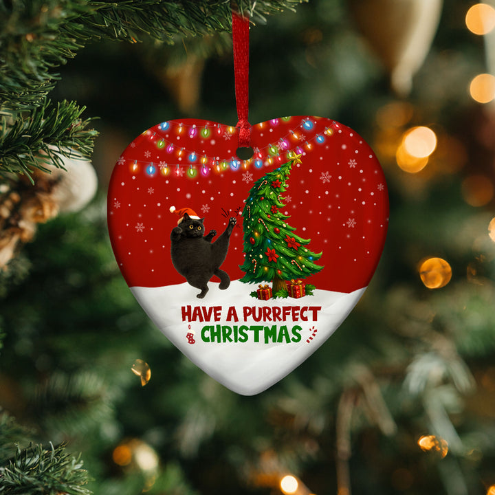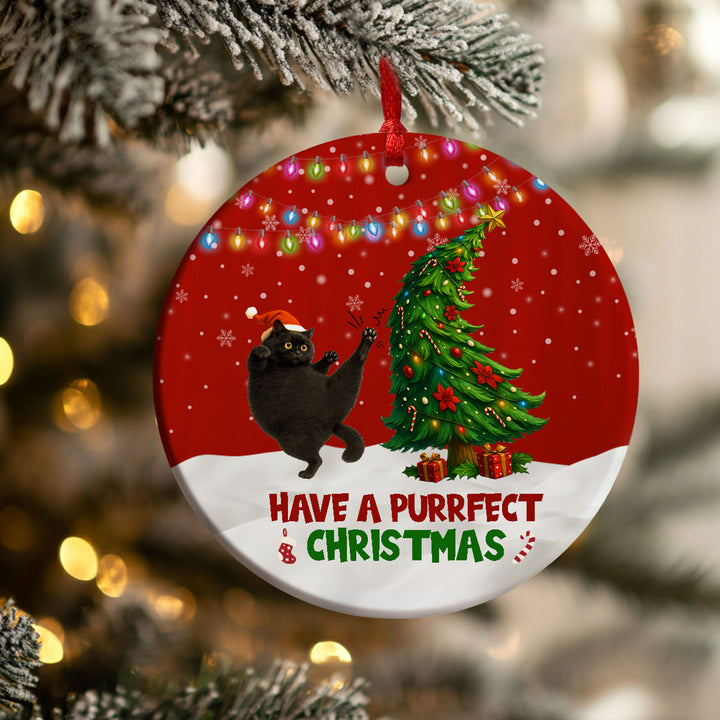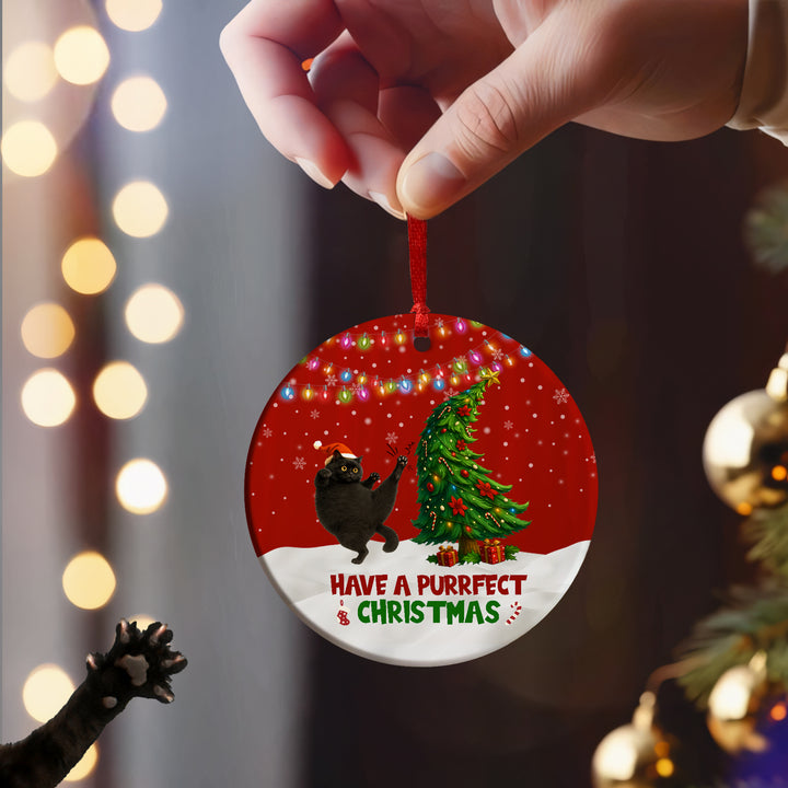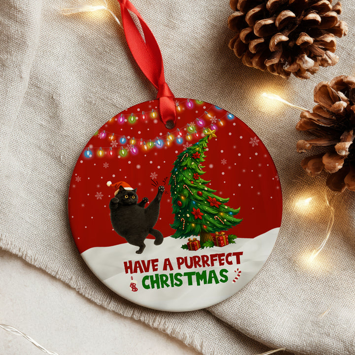 Black Bombay Cat Christmas Ceramic Ornament for Cat Lovers
