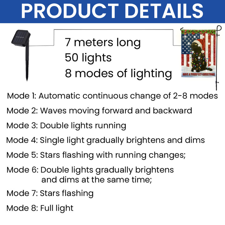 • 8 Light Modes - The solar led lights outdoor waterproof create different aesthetic atmosphere with various light modes. You can choose from 8 different lighting modes and speeds to enhance the festive ambience, making your Christmas colorful!