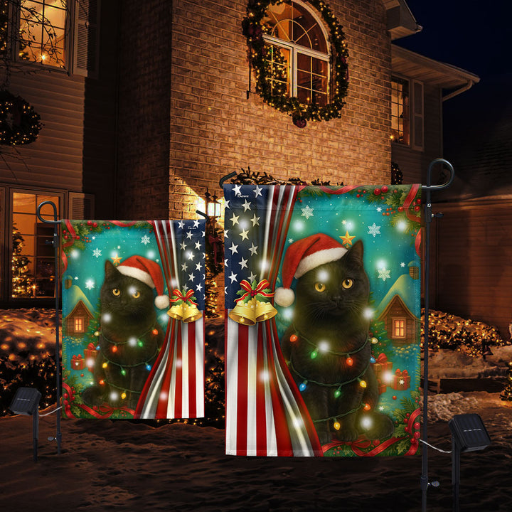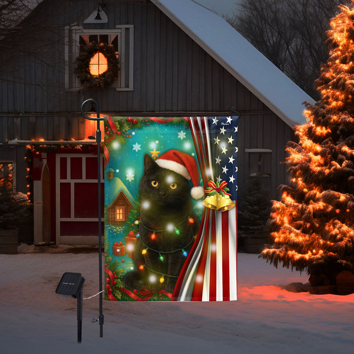 Black Cat Bombay Christmas Solar LED Garden Flag for Cat Lovers