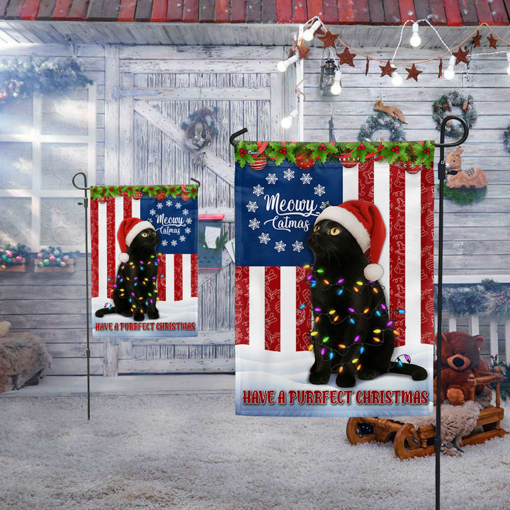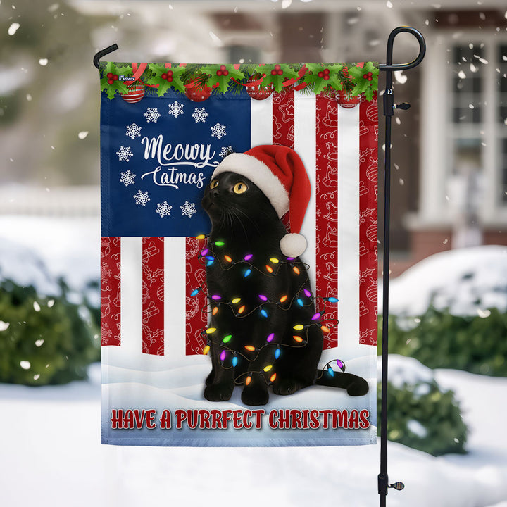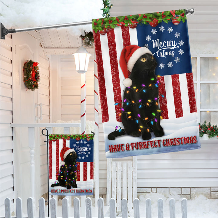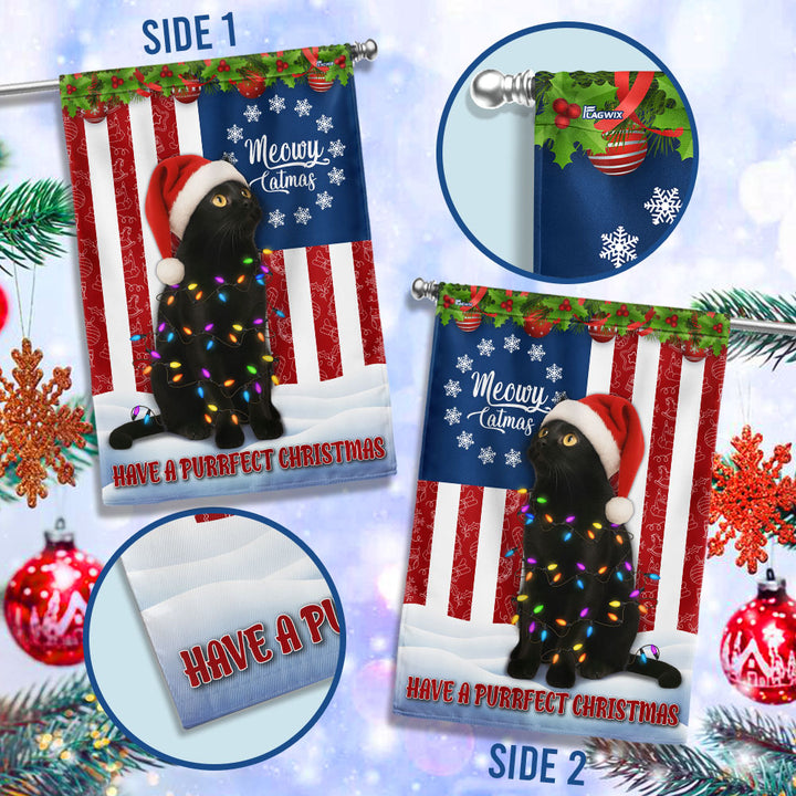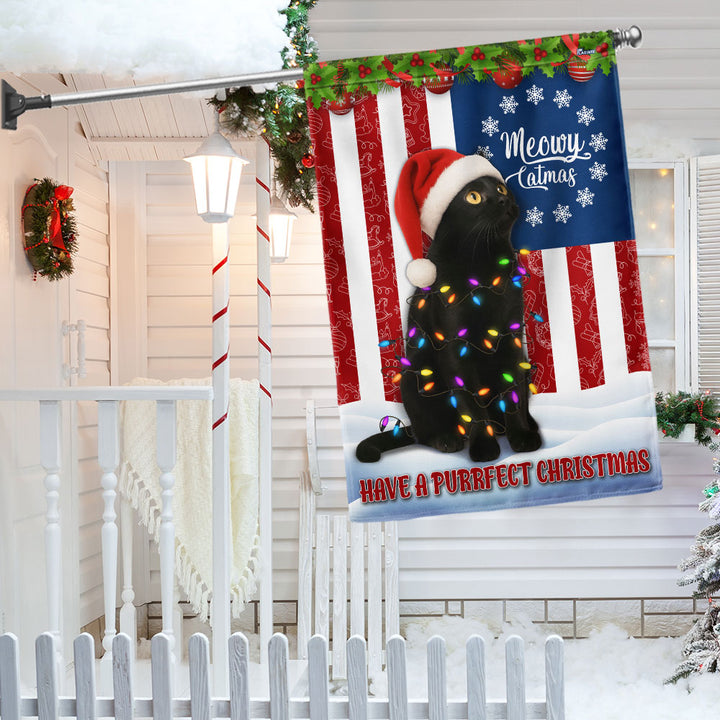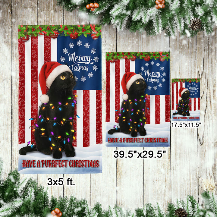 Black Cat Bombay Christmas Flag | Have A Purrfect Christmas US Flag