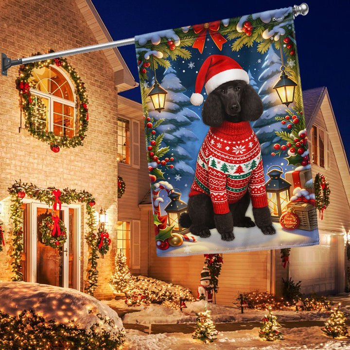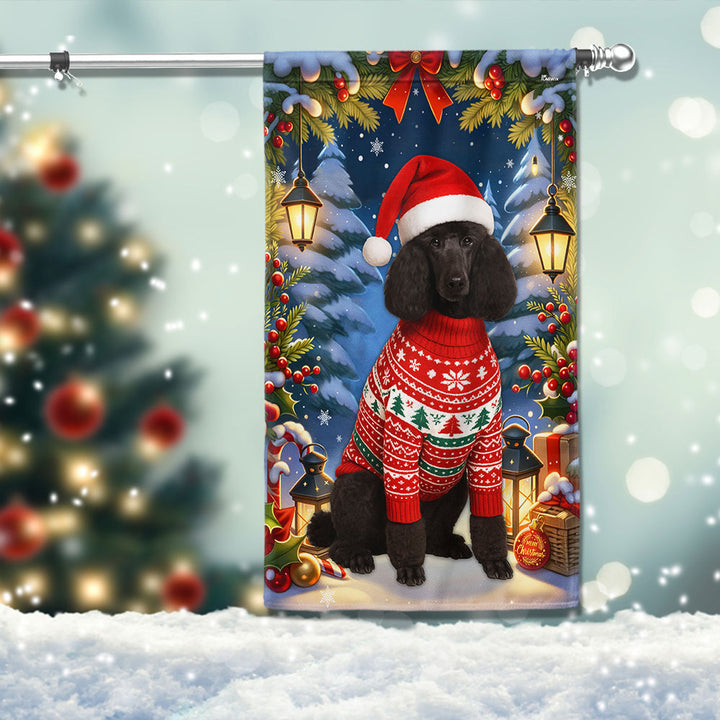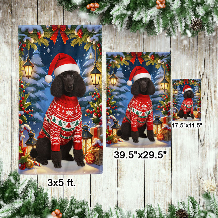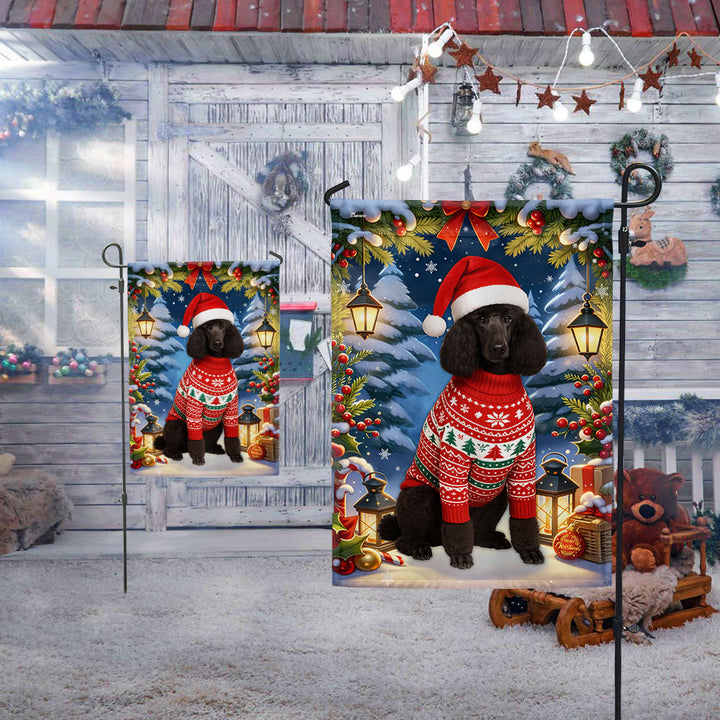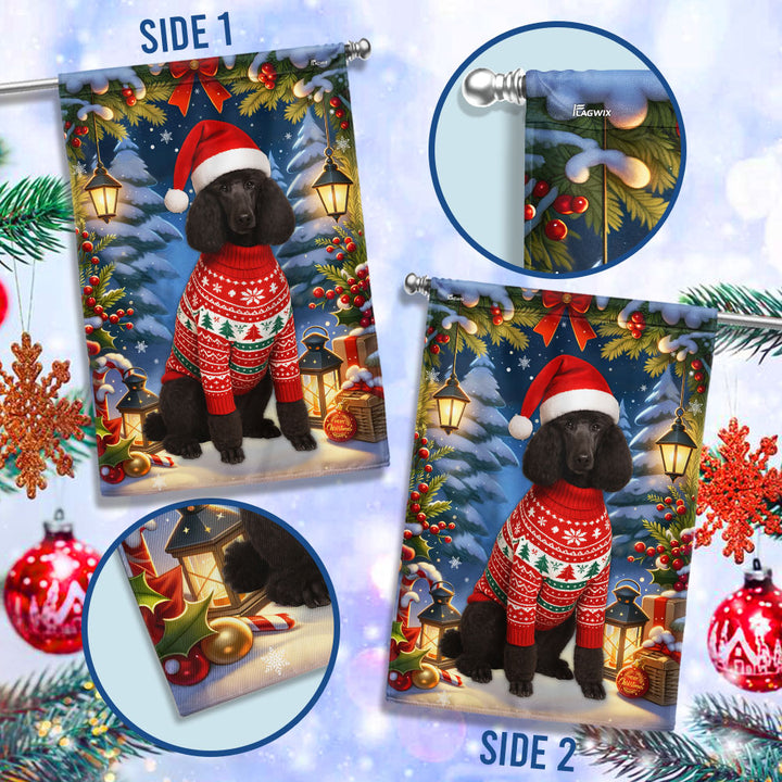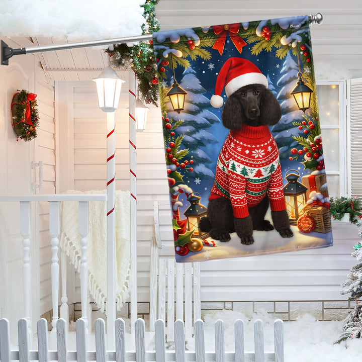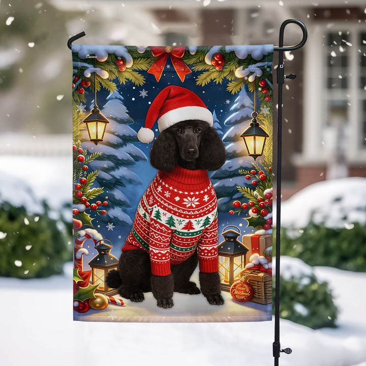 Black Poodle Christmas Garden Flag for Festive Winter Decorations