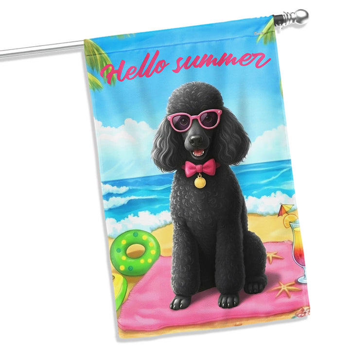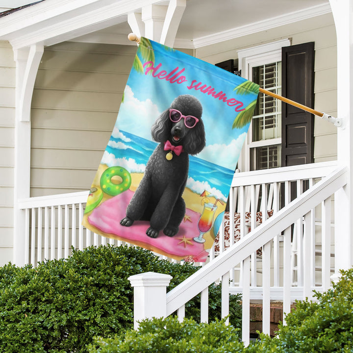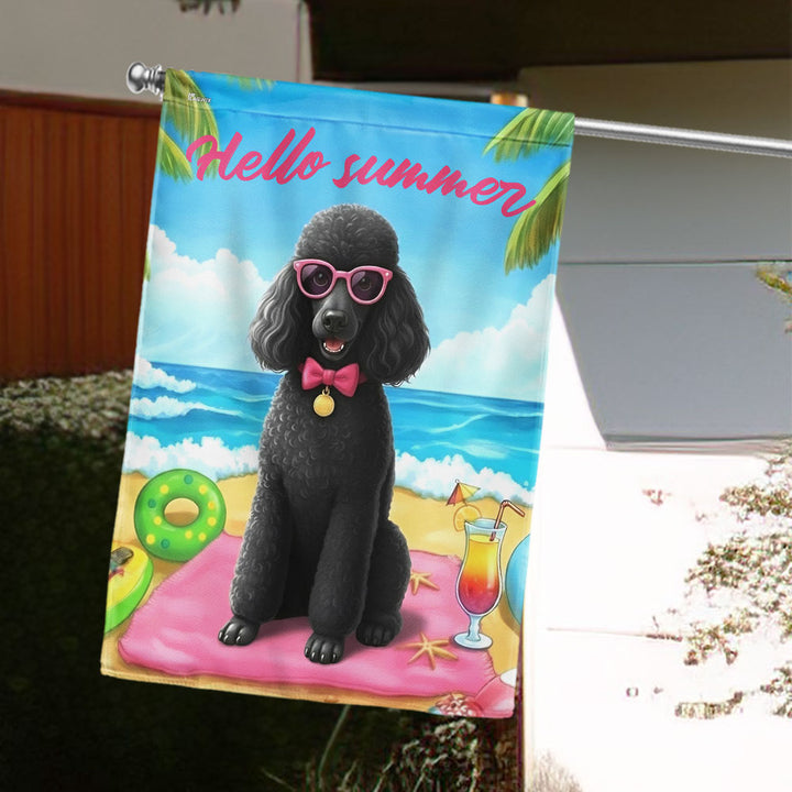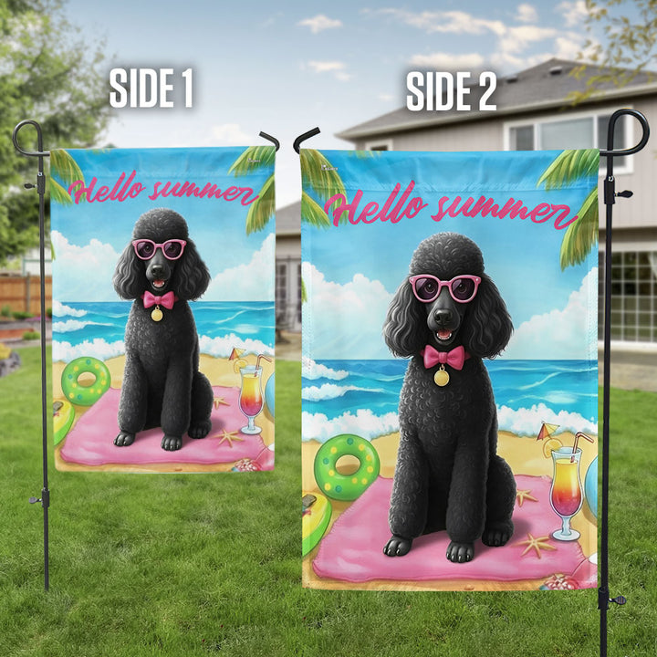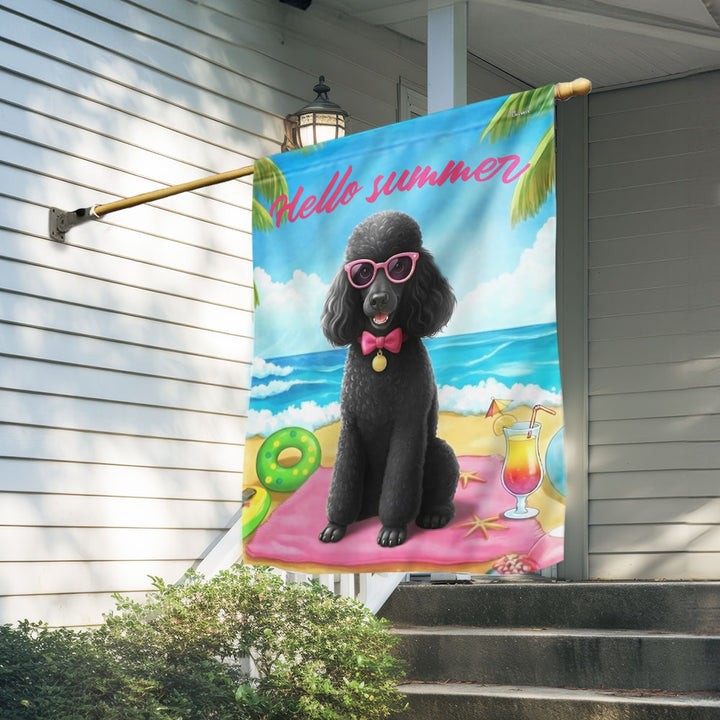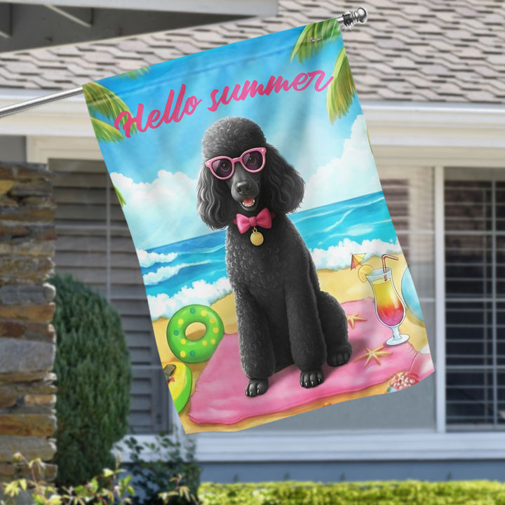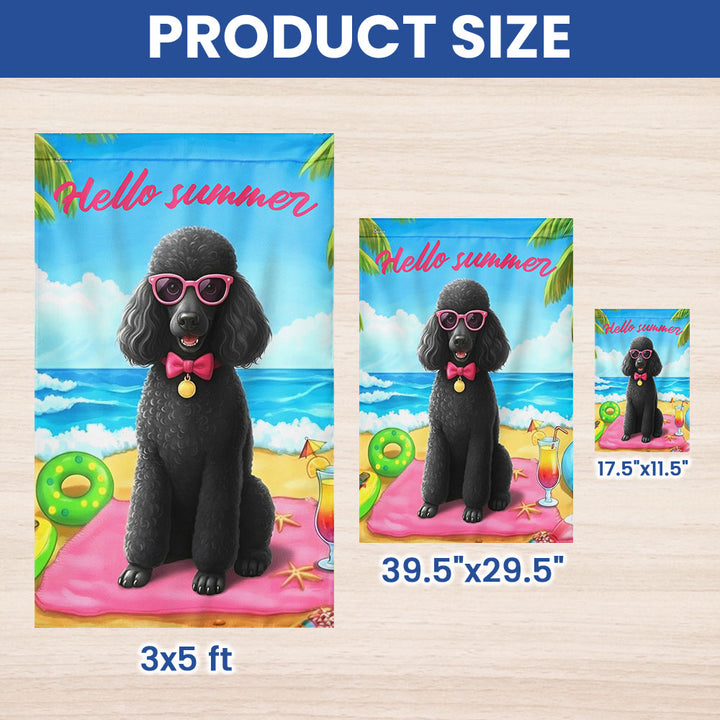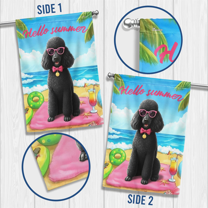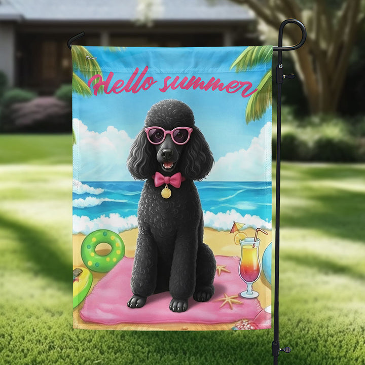 Black Poodle Summer Garden Flag in Beach Theme for Dog Lovers