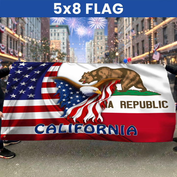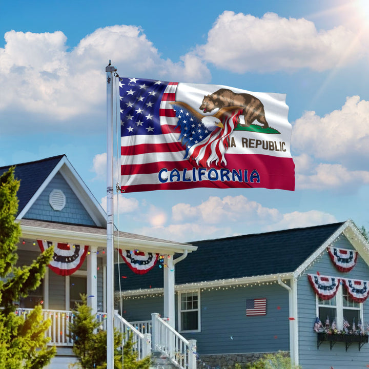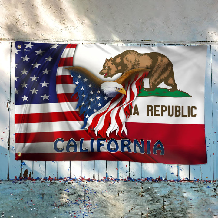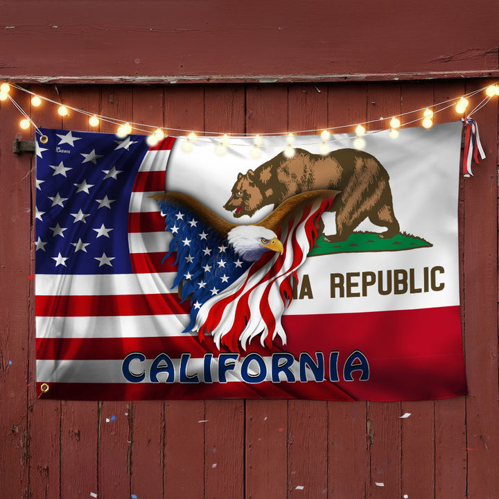 California American Flag | Patriotic Grommet Flag with Bald Eagle and Bear