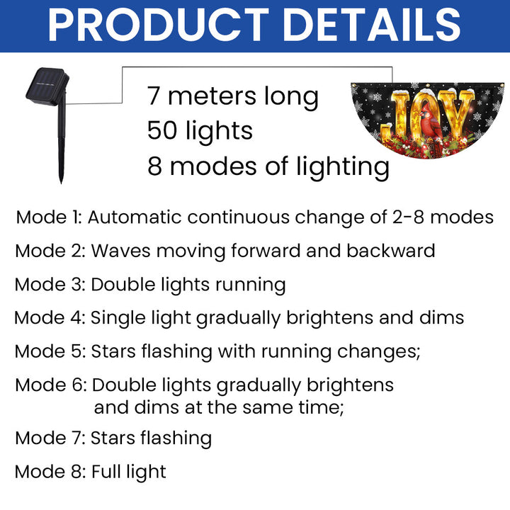 • 8 Light Modes - The solar led lights outdoor waterproof create different aesthetic atmosphere with various light modes. You can choose from 8 different lighting modes and speeds to enhance the festive ambience, making your Christmas colorful!