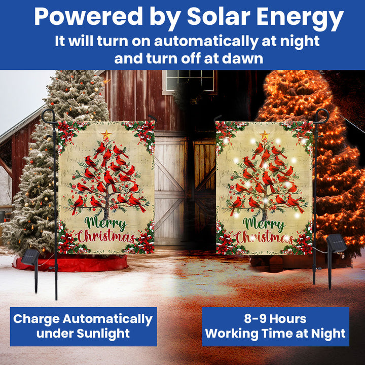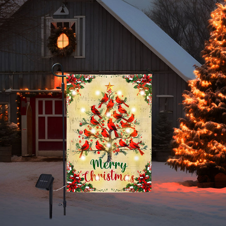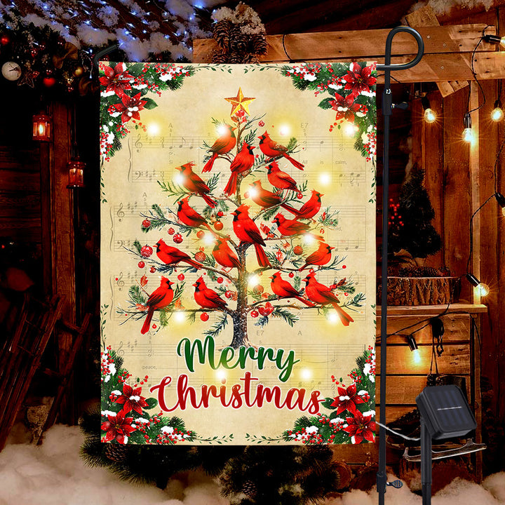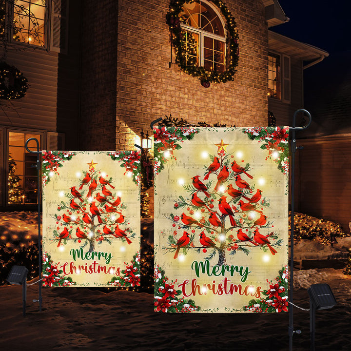 Cardinal Merry Christmas Flag | Cardinal Tree Solar Led Garden Flag