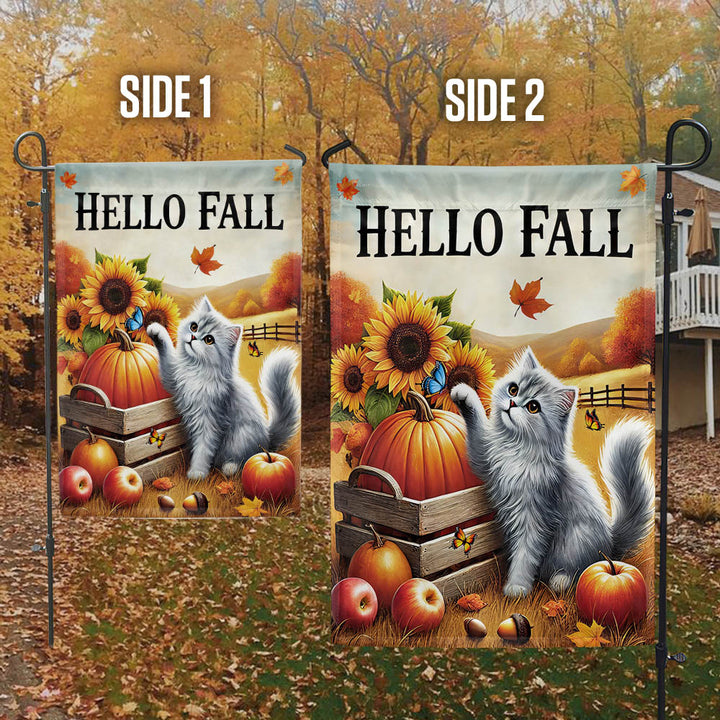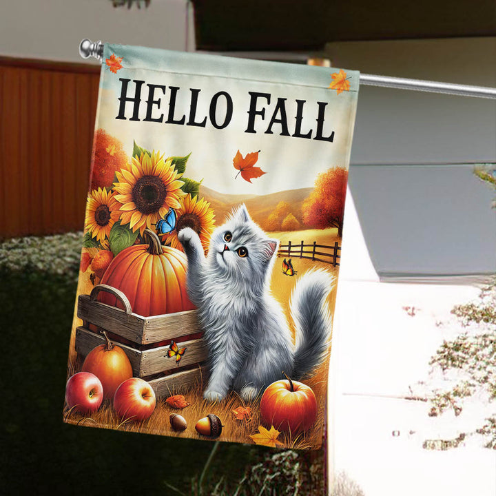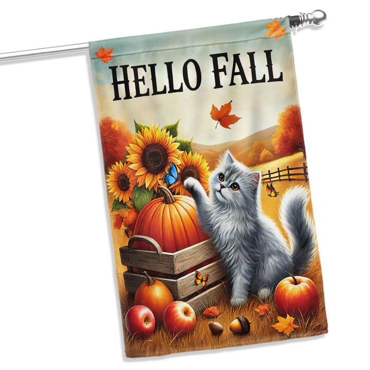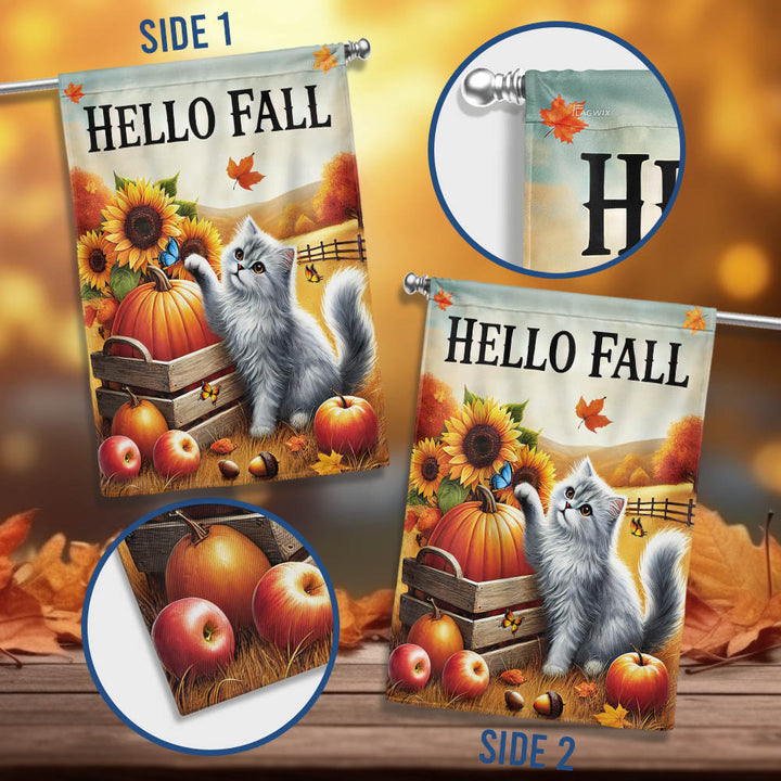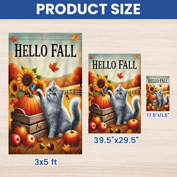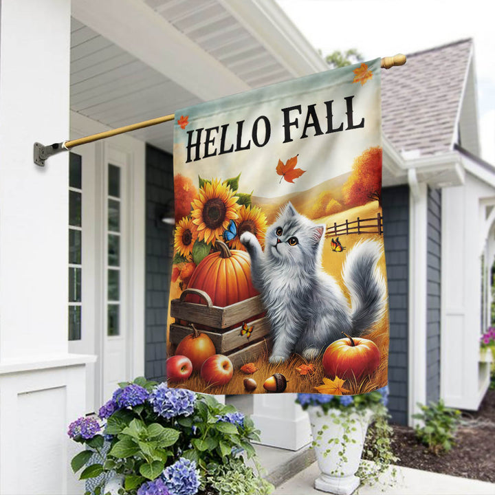 Cat Fall Thanksgiving Hello Fall Flag MLN-2508-TTH