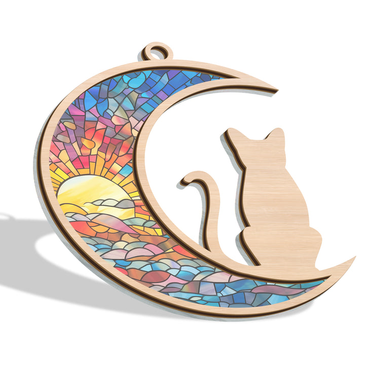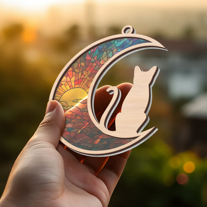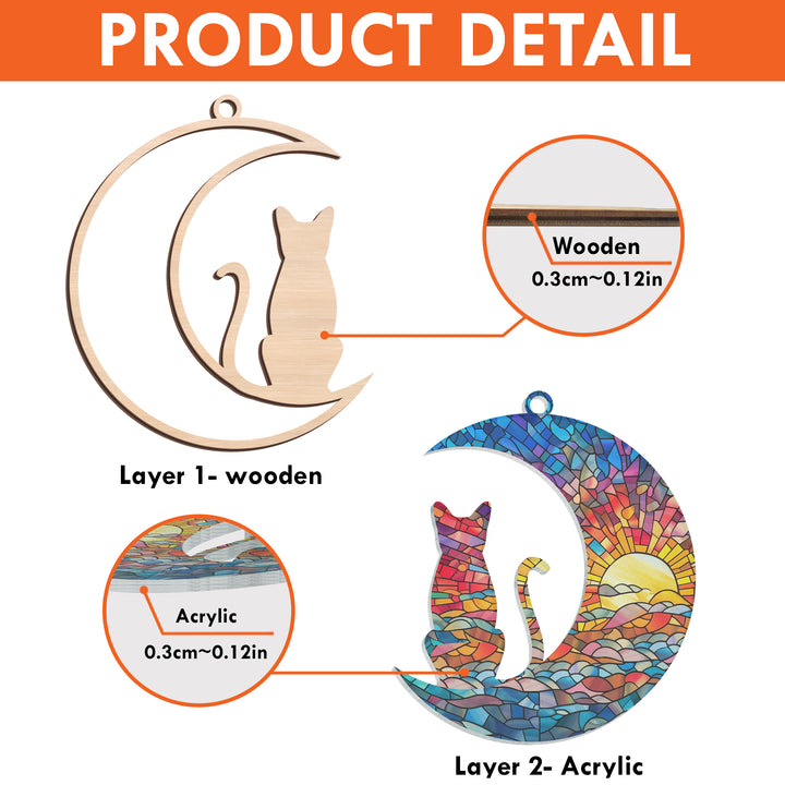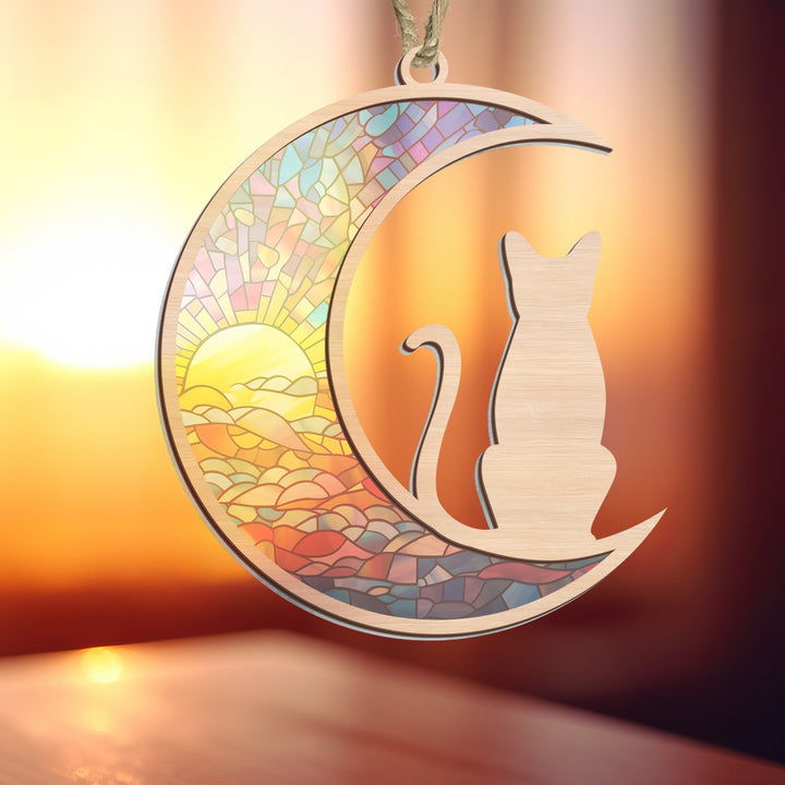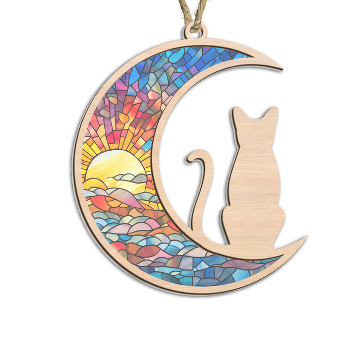 Christmas Ornament, Cat On The Moon Suncatcher Ornament