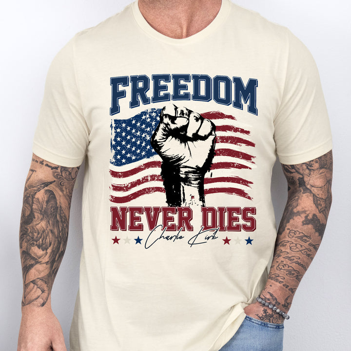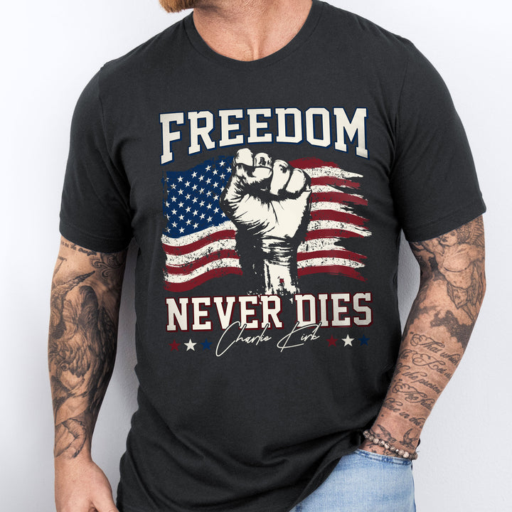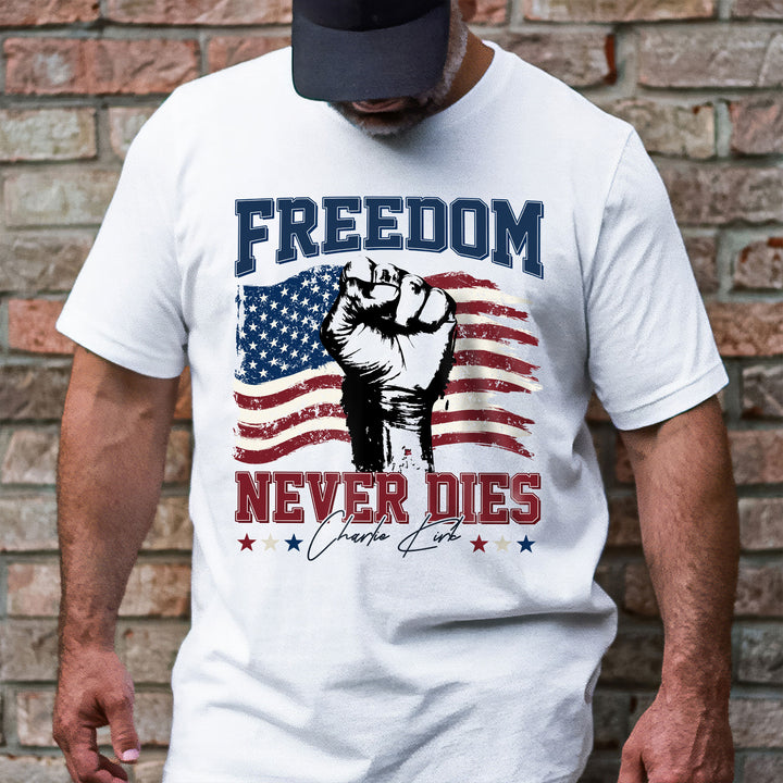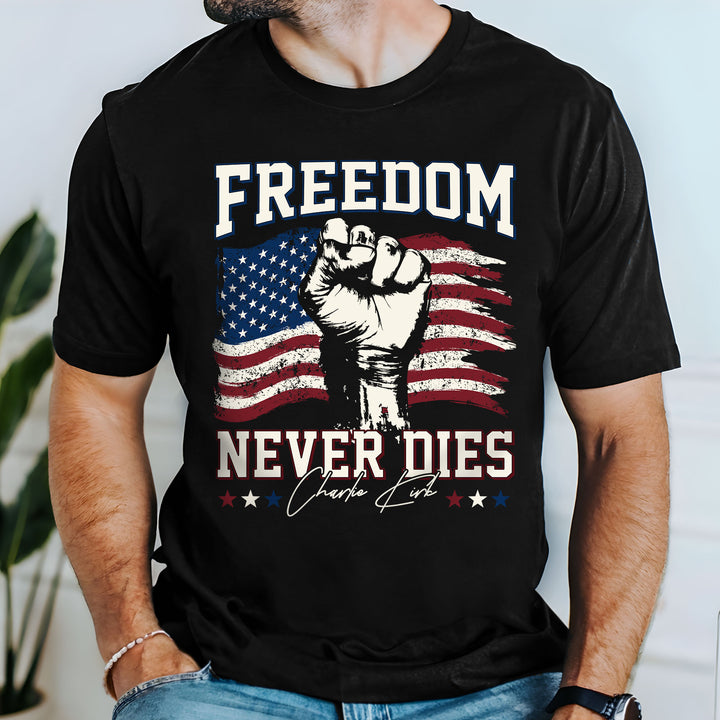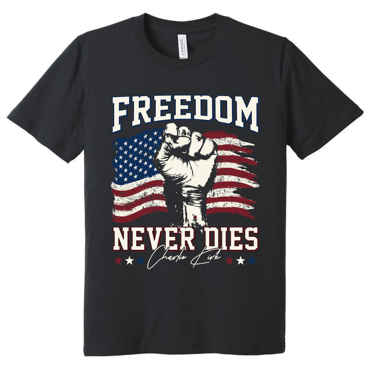 Charlie Kirk Freedom Never Dies American Flag Patriotic Shirt