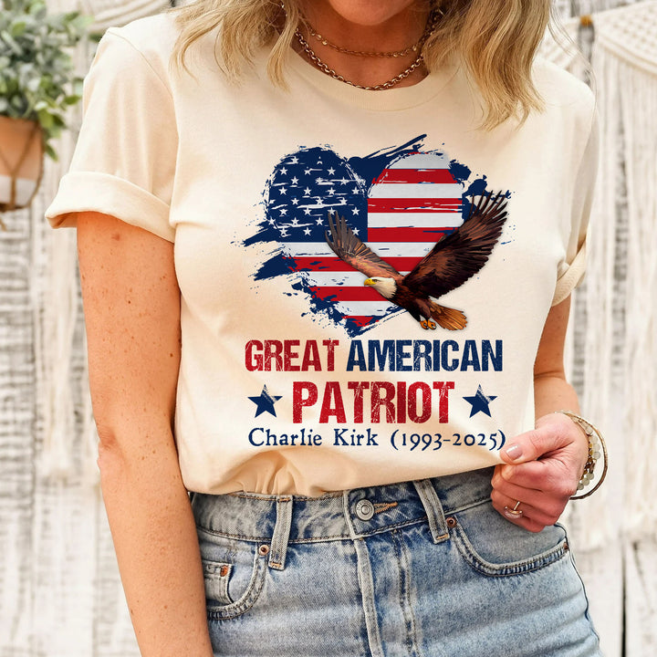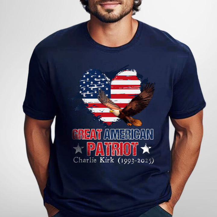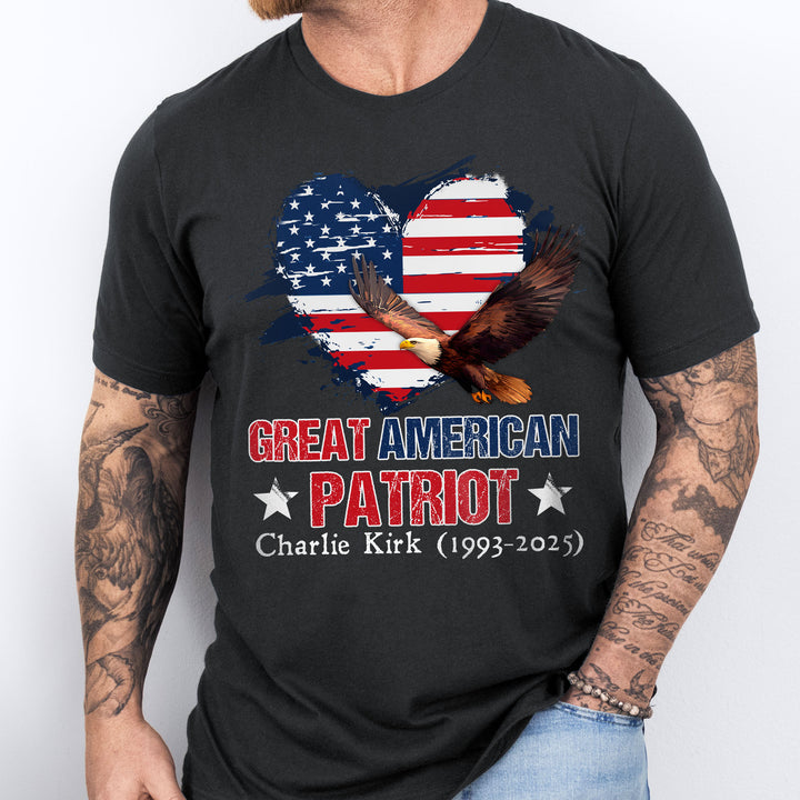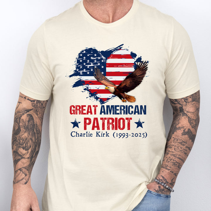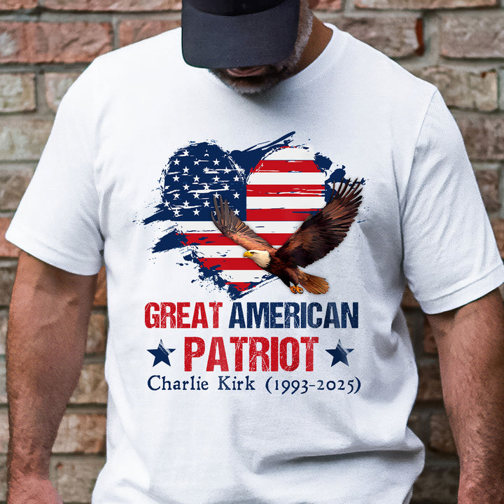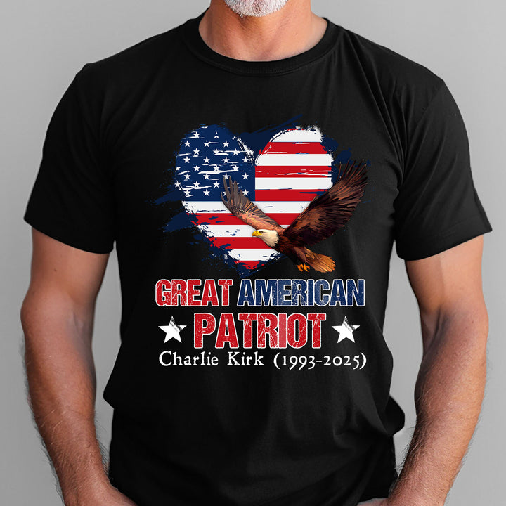 Charlie Kirk Great American Patriot T-Shirt with Bald Eagle USA Flag