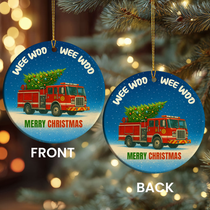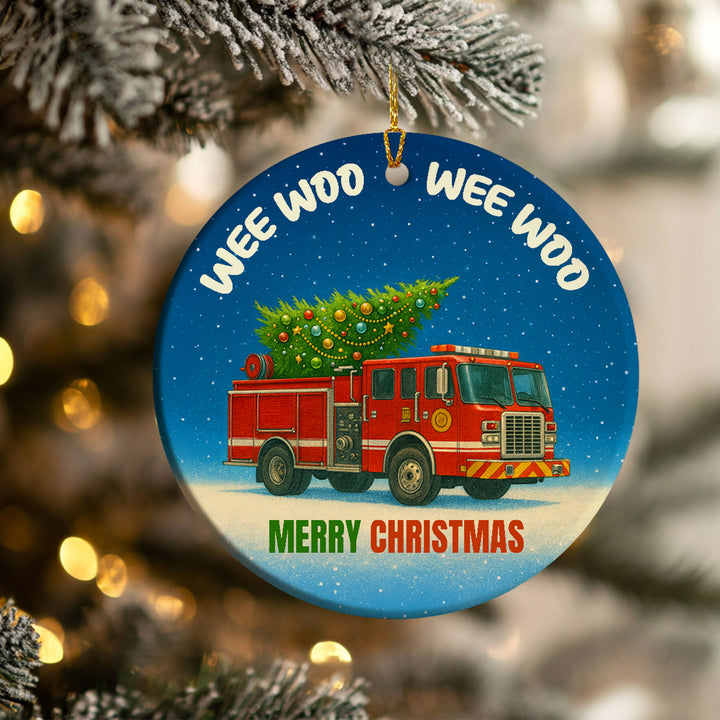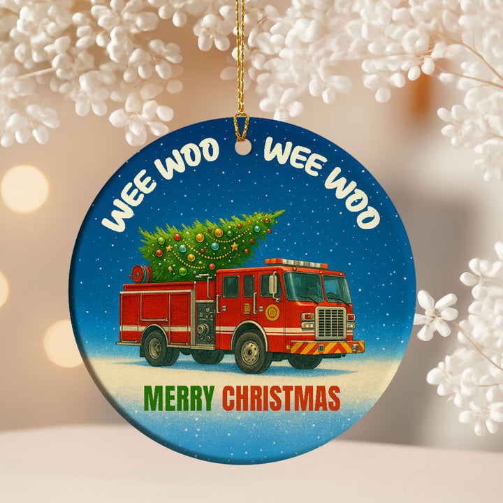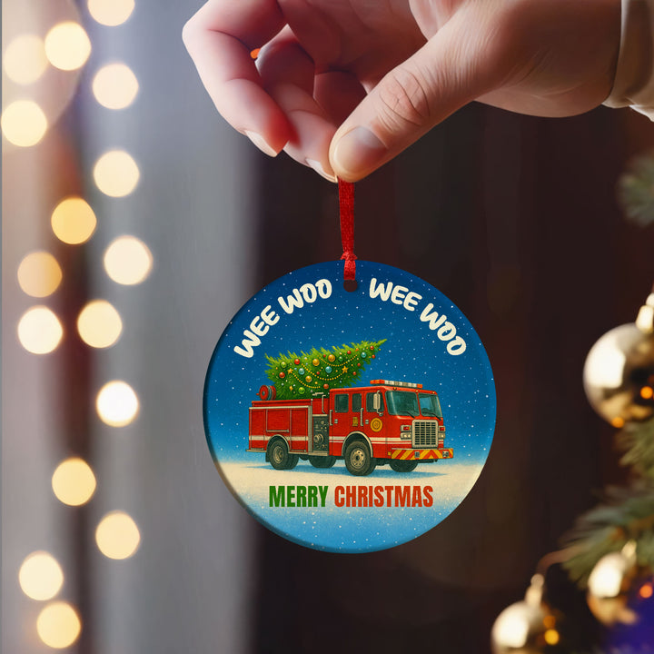 Christmas Firefighter Ornament | Wee Woo Fire Truck Tree Decoration
