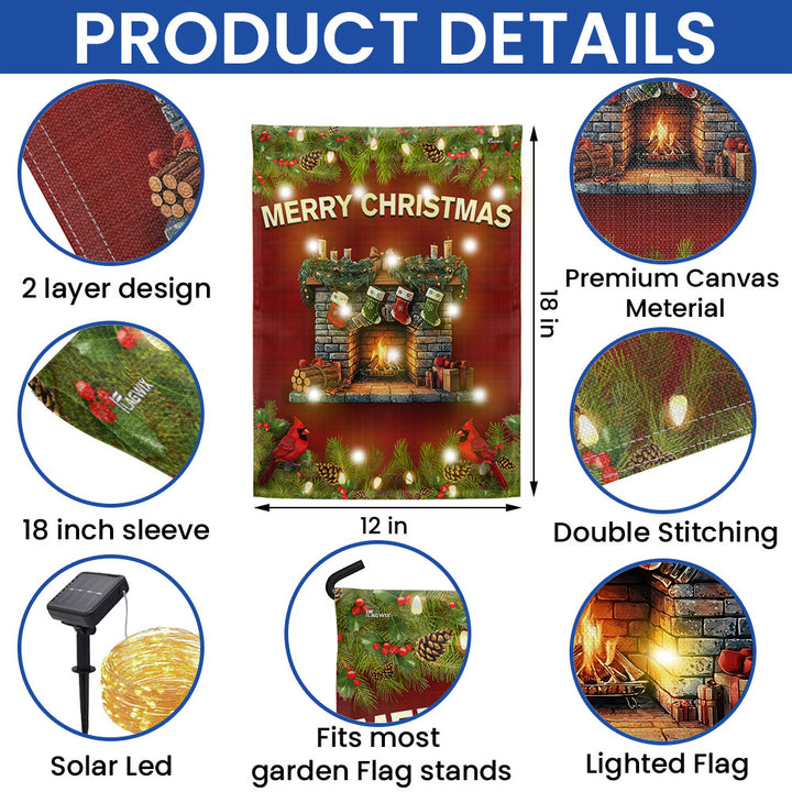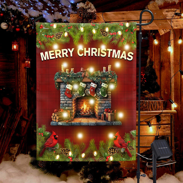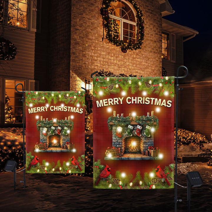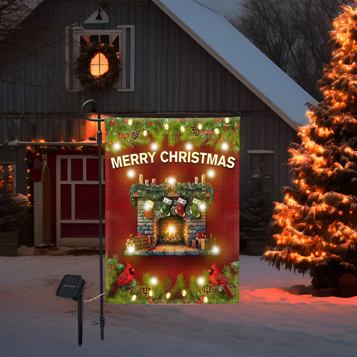 Christmas Fireplace Flag | Cardinal Merry Christmas Solar LED Garden Flag
