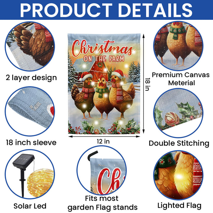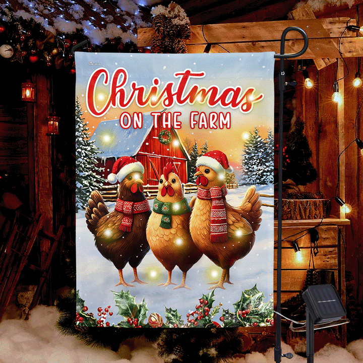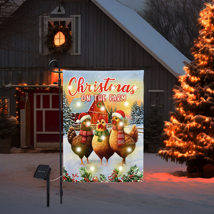 Christmas on the Farm Country Hens Farm Red Barn Solar Led Garden Flag