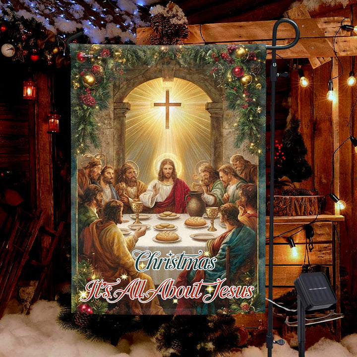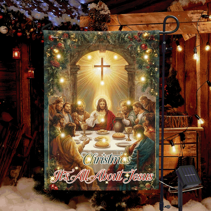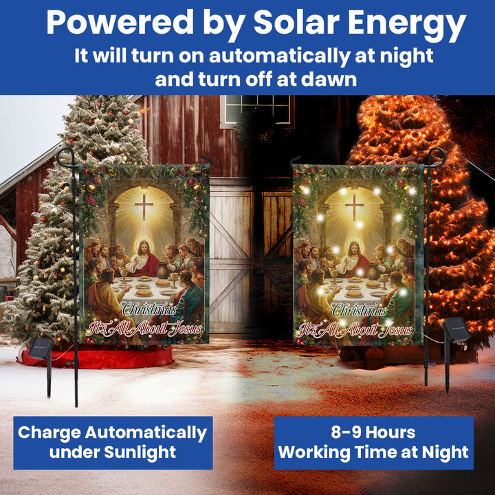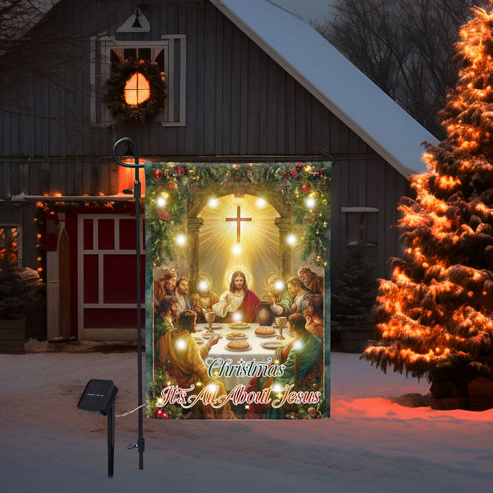 Christmas Solar LED Garden Flag | It’s All About Jesus Christian Decor