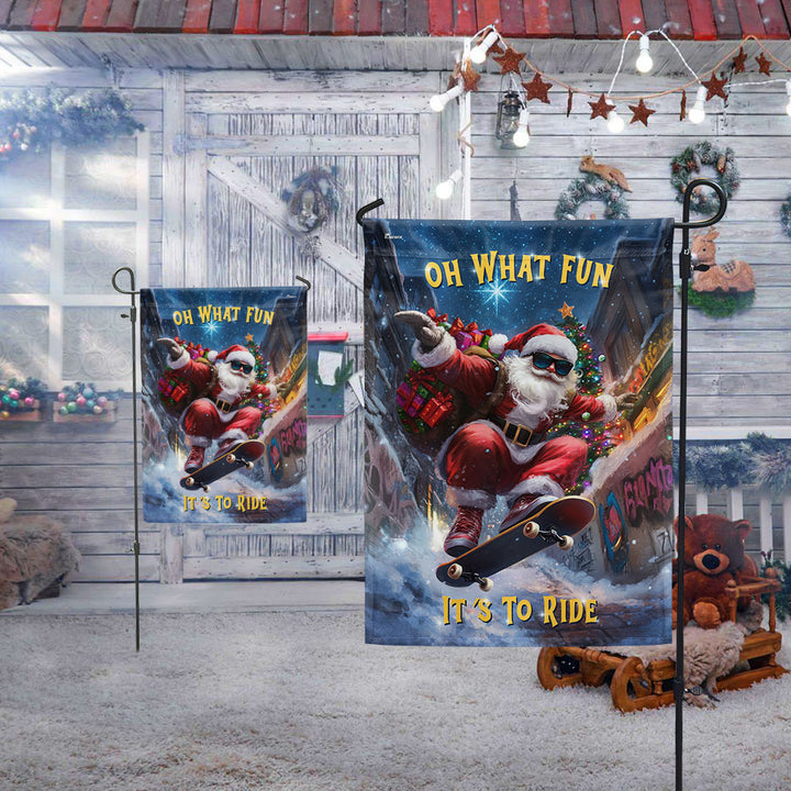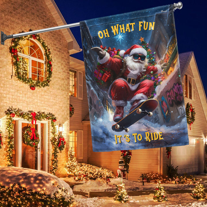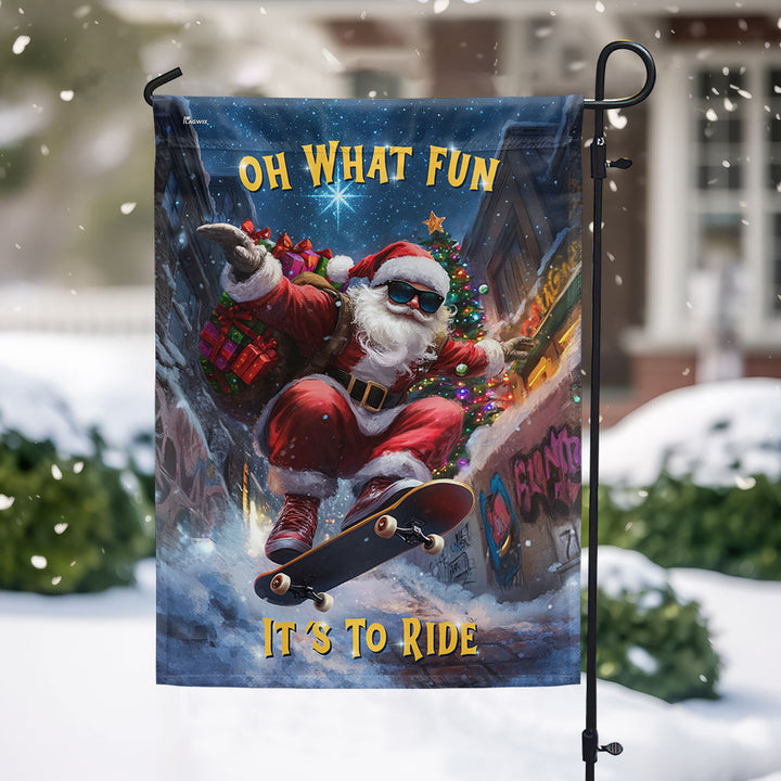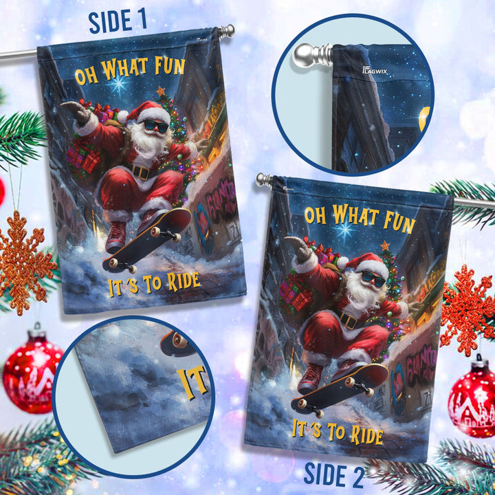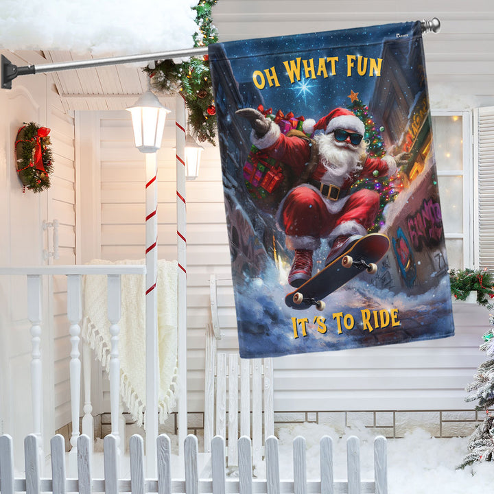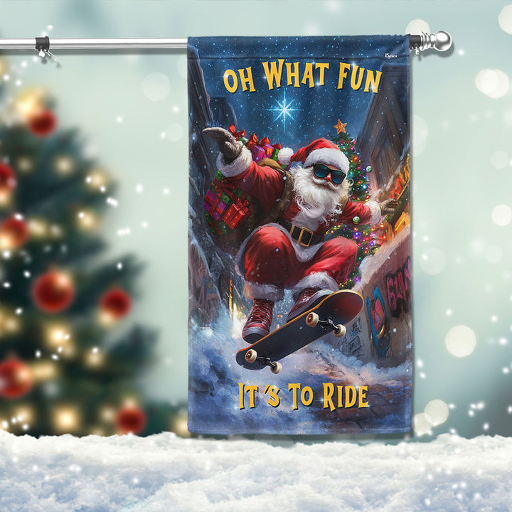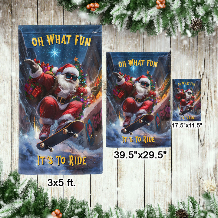 Cool Santa Christmas Flag | Skateboarding Santa Flag for Holiday Decor