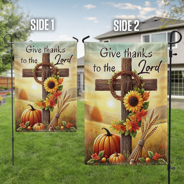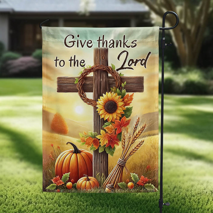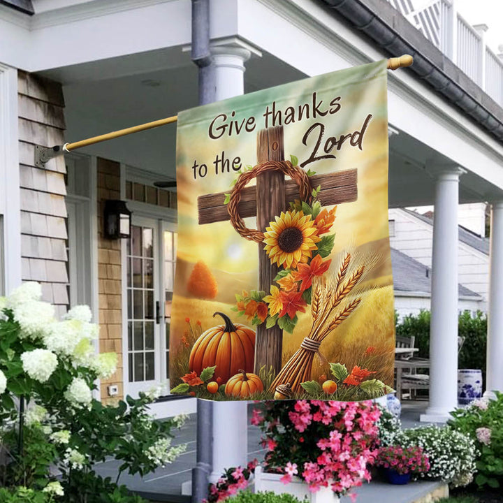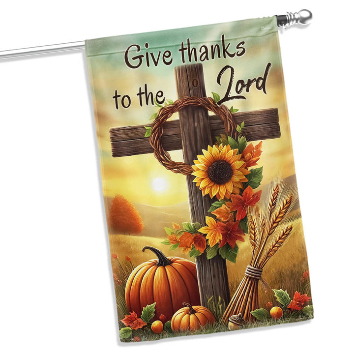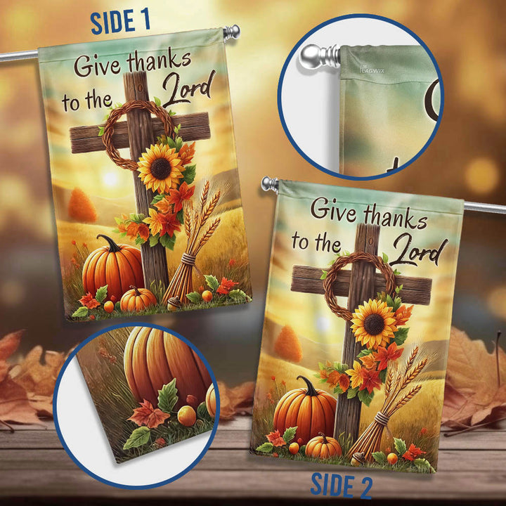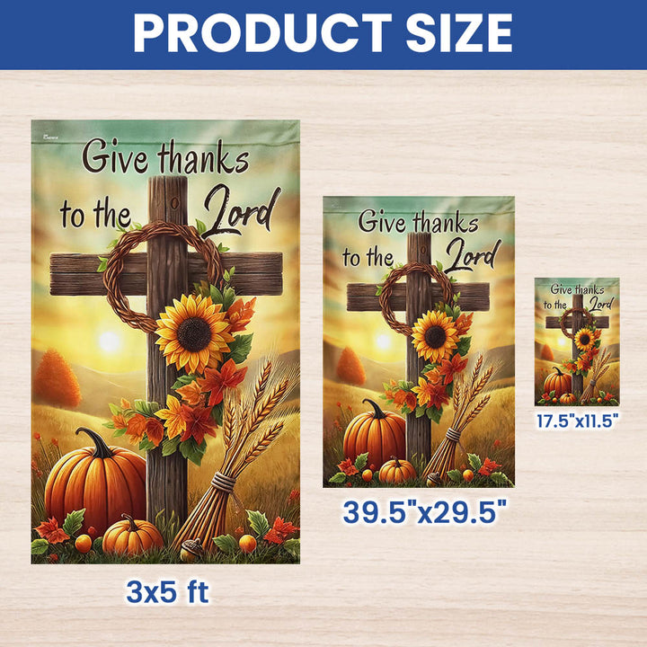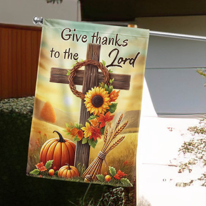 Fall Thanksgiving Christian Cross Flag - Give Thanks To The Lord Autumn Flag MLN-2542-TTH