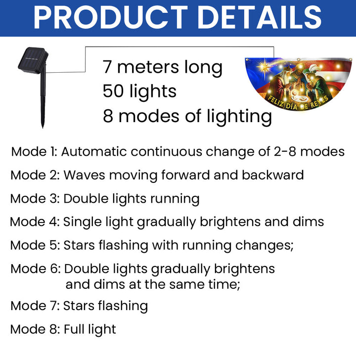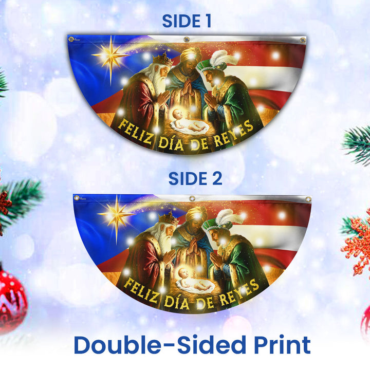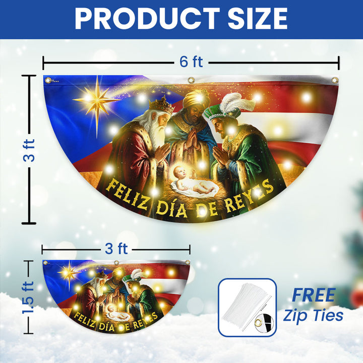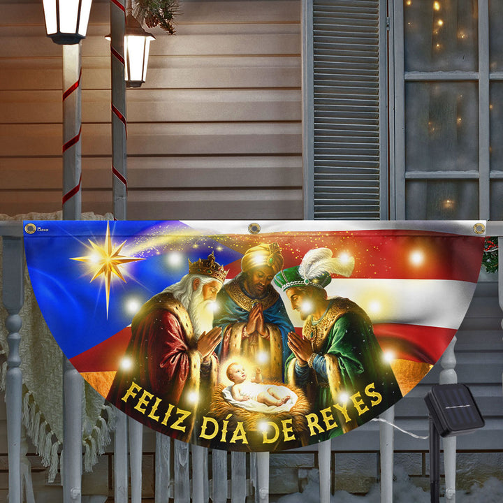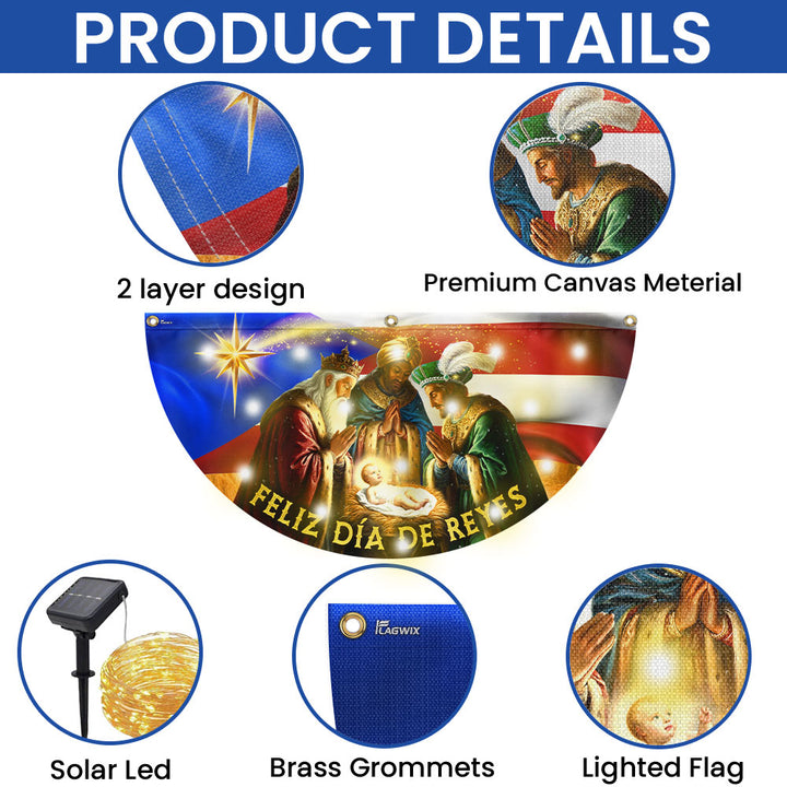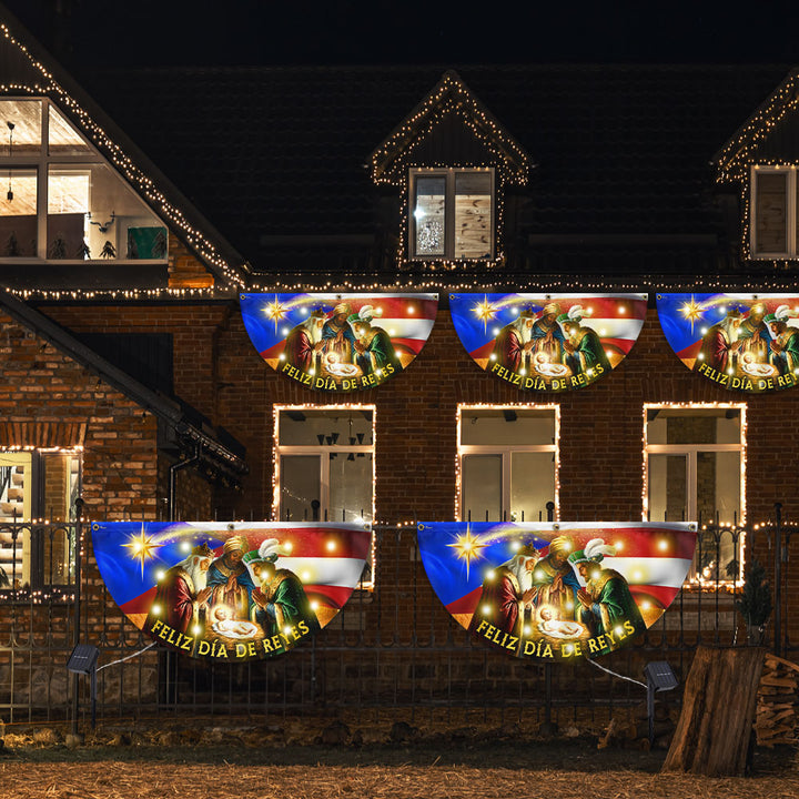 Feliz Día De Reyes Flag | Nativity Puerto Rico Solar Led Fan Flag