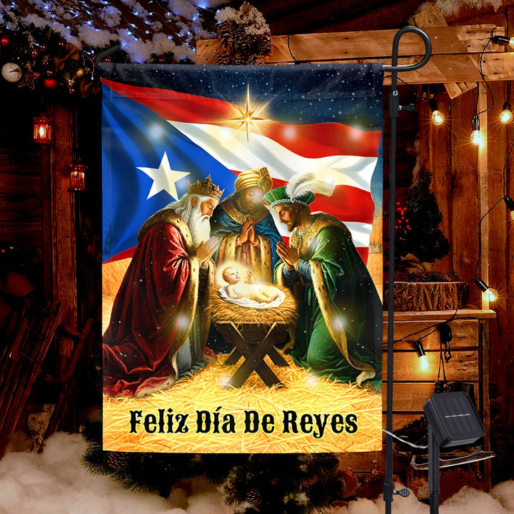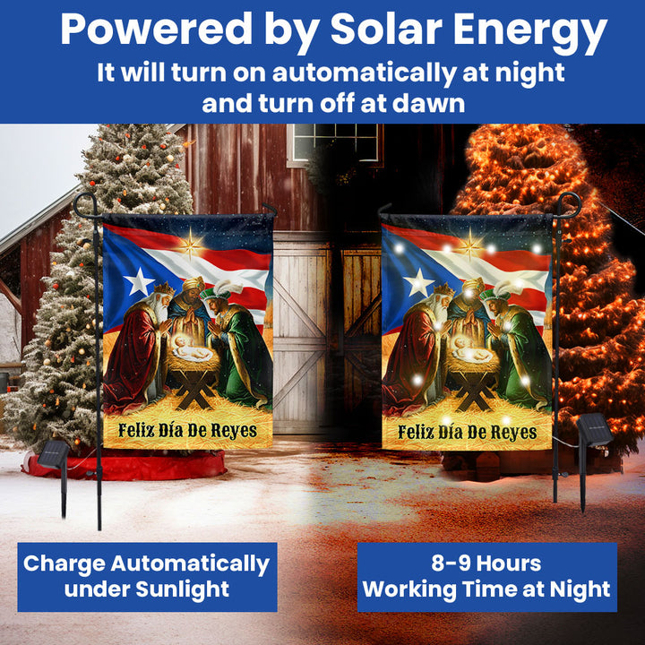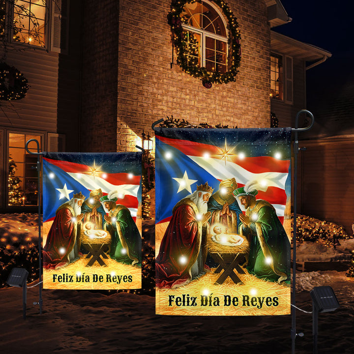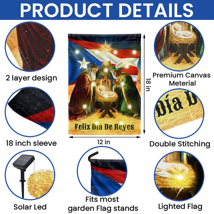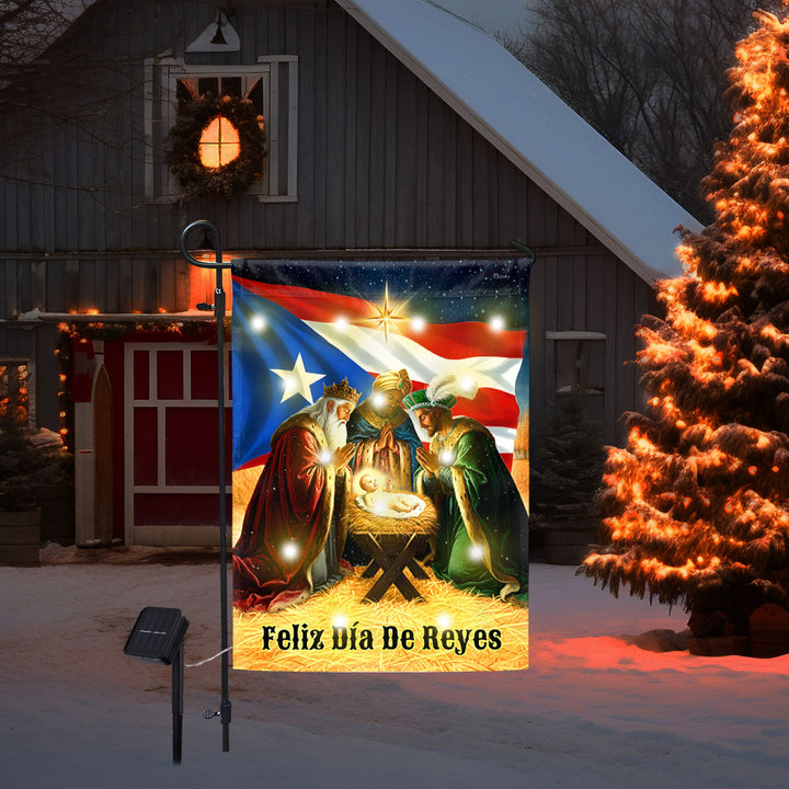 Feliz Día De Reyes Flag | Nativity Puerto Rico Solar Led Garden Flag