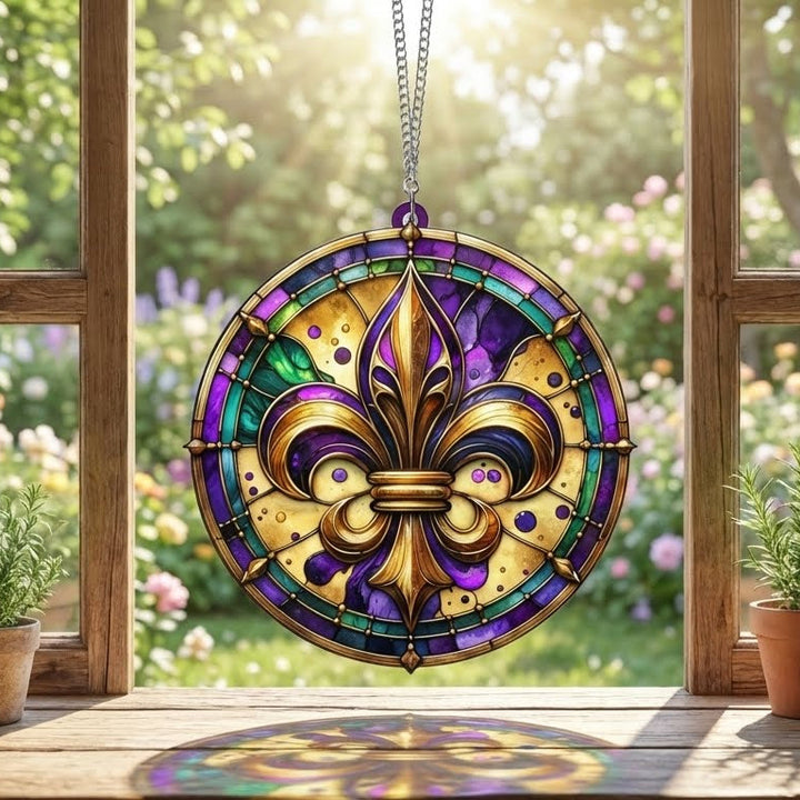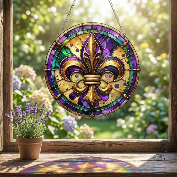 Fleur De Lis Mardi Gras Suncatcher Acrylic Hanging Sign