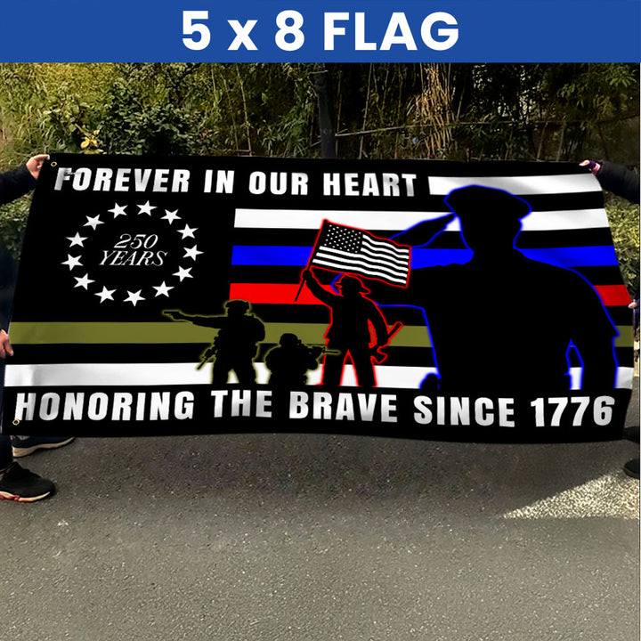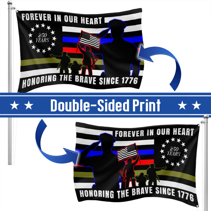 Forever in Our Heart 250 Years Flag | Military Grommet Flag for Veterans Day