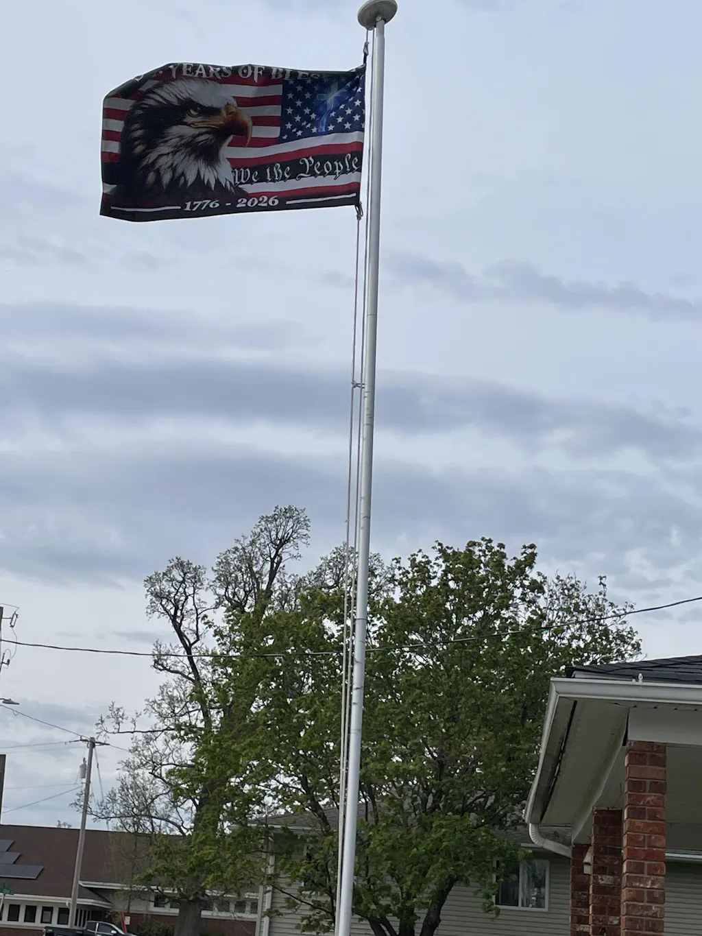 The flag arrived in perfect condition and is now gracefully blowing in the wind by our front doors