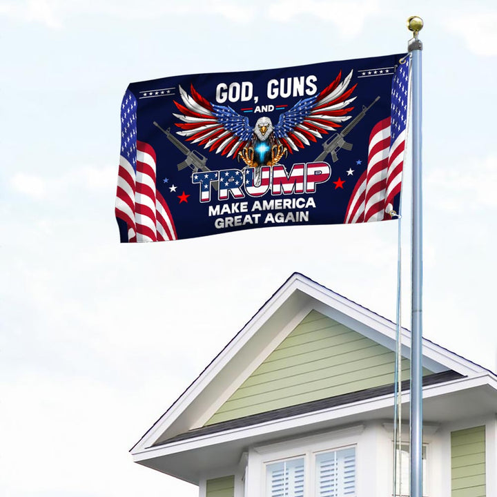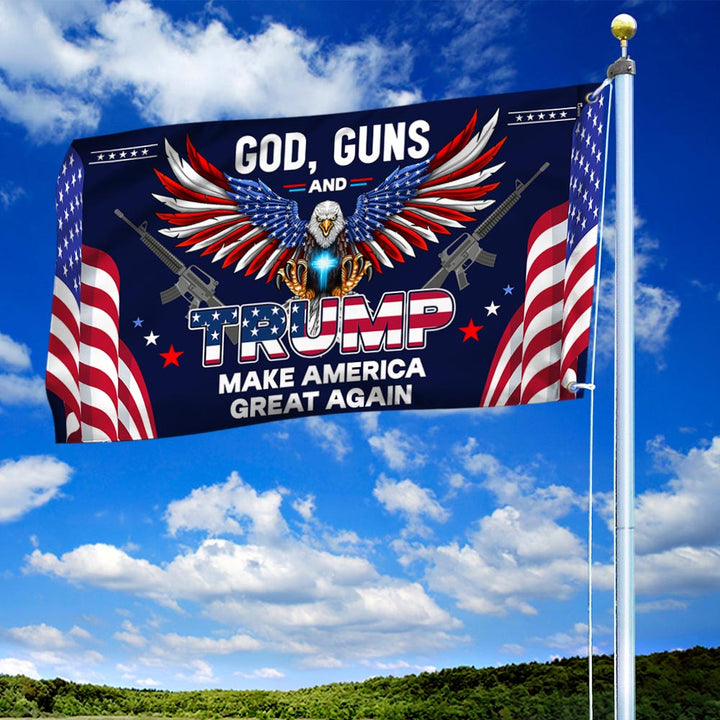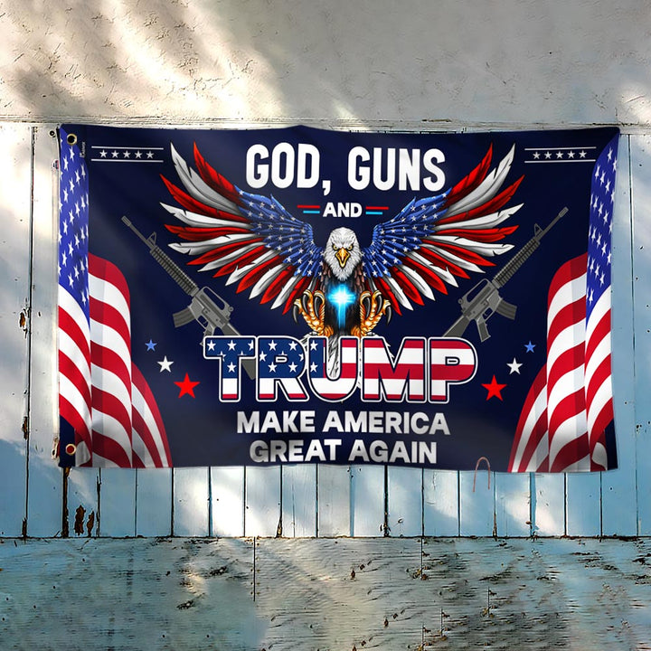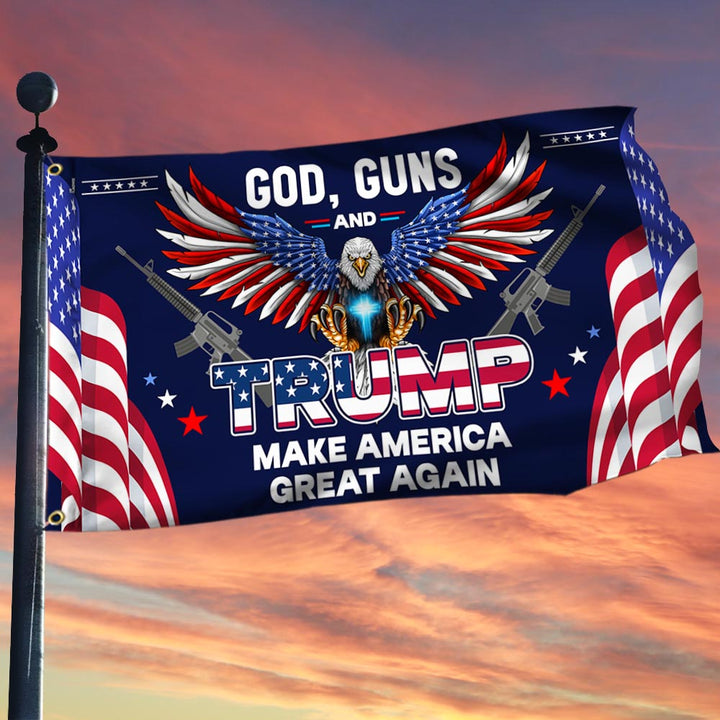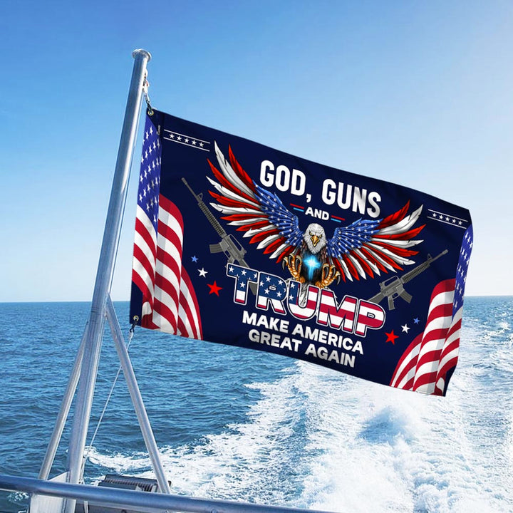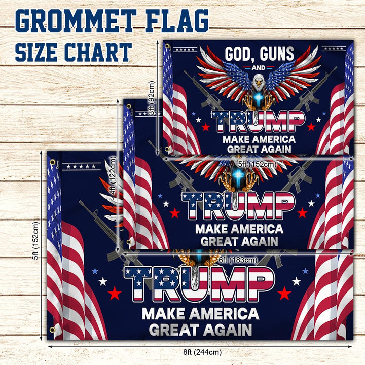 God Guns and Trump MAGA Patriotic American Grommet Flag